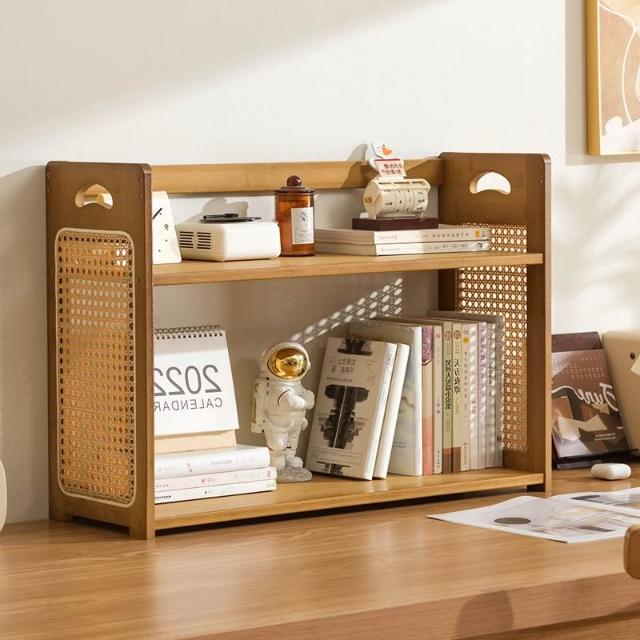 桌面置物架多層書桌收納架子辦公桌分層架藤編學生宿舍桌上小書架