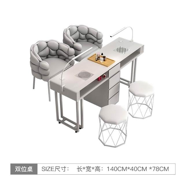 美甲桌椅 套裝經濟型等雙人桌 輕奢多功能美甲臺 奶油桌椅 單人多人美甲桌 儲物桌