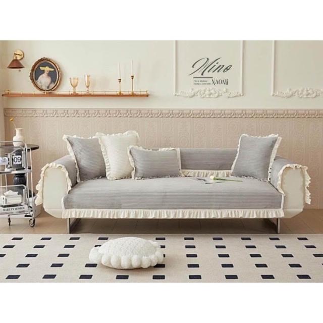 《韓系復古珊瑚絨荷葉邊純色沙發墊、抱枕系列》