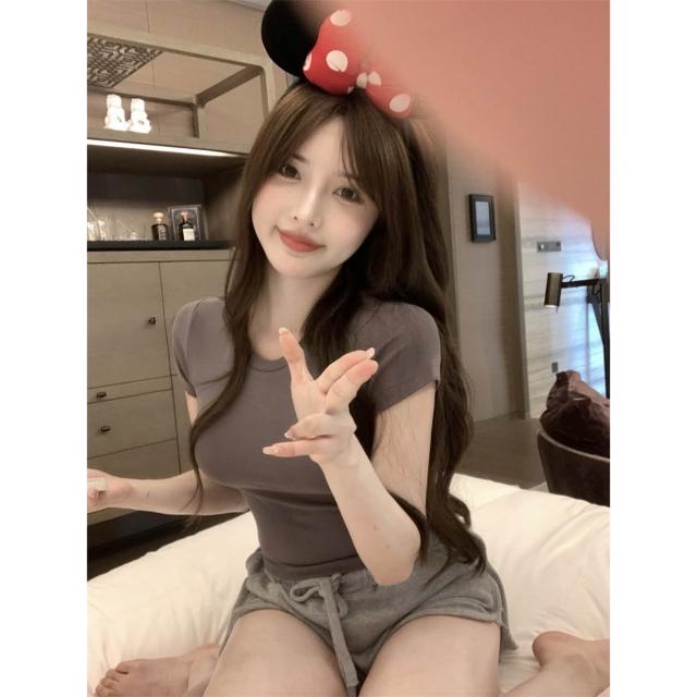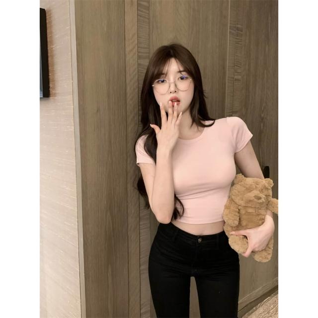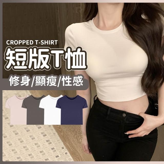 短版T恤 素T 短T 白T 性感 露肚臍 修身 顯瘦 韓國 韓版T恤 方領 基本短T 女上衣 打底衫 圓領T恤