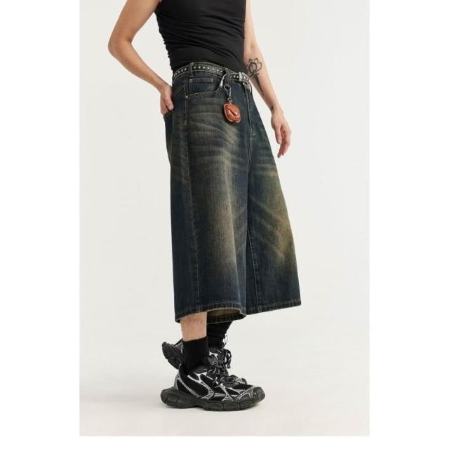 美式七分牛仔短褲《J.Y》男女 寬鬆 闊腿 七分褲 直筒 牛仔褲 嘻哈 街頭 潮流 復古 韓系