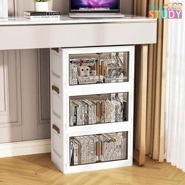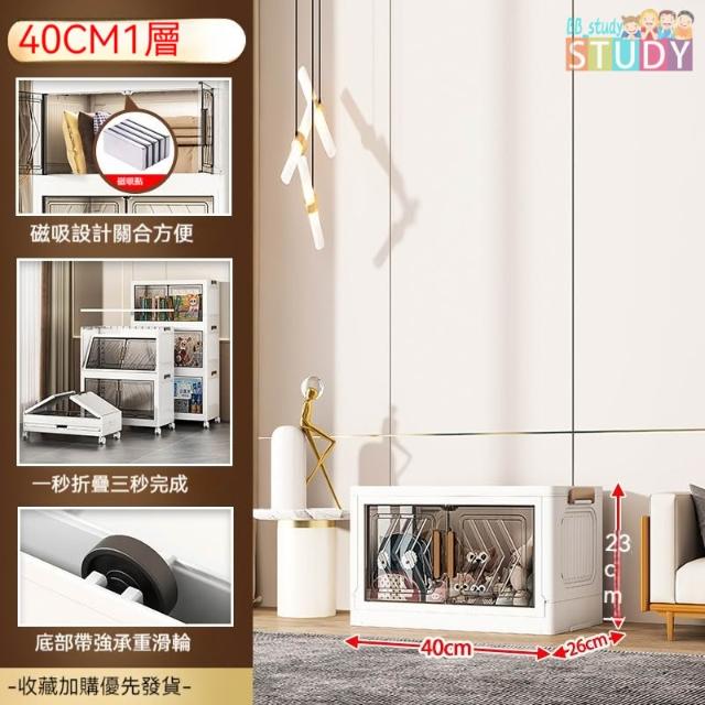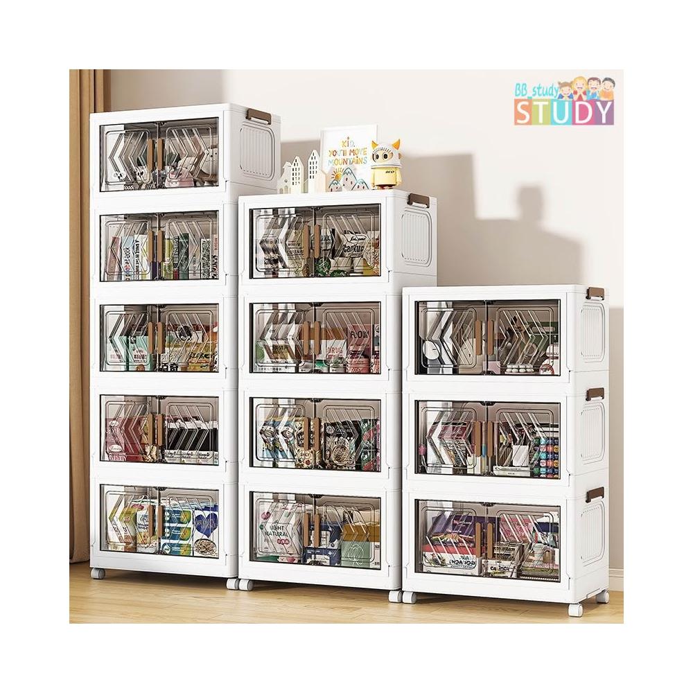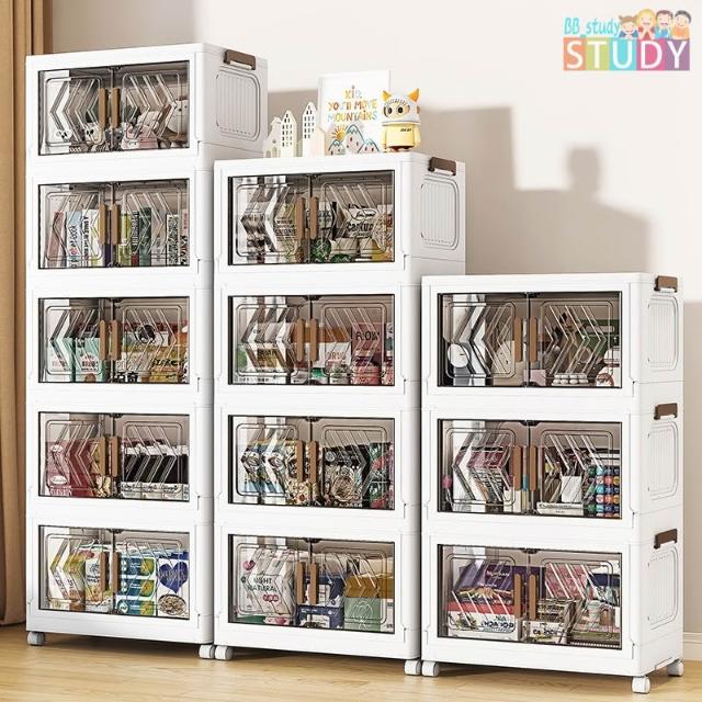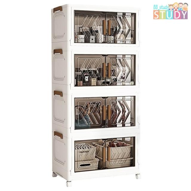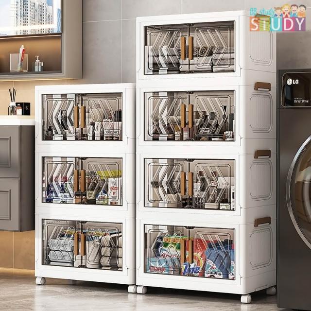 廚房收納櫃 免安裝房間衛浴整理置物架 落地式旁櫃 多層塑膠收納架 可折疊收納箱 前置開門及頂蓋外開 底部附滑輪輕推行置箱
