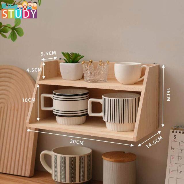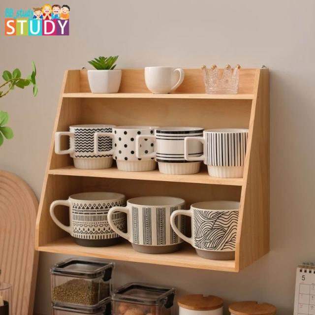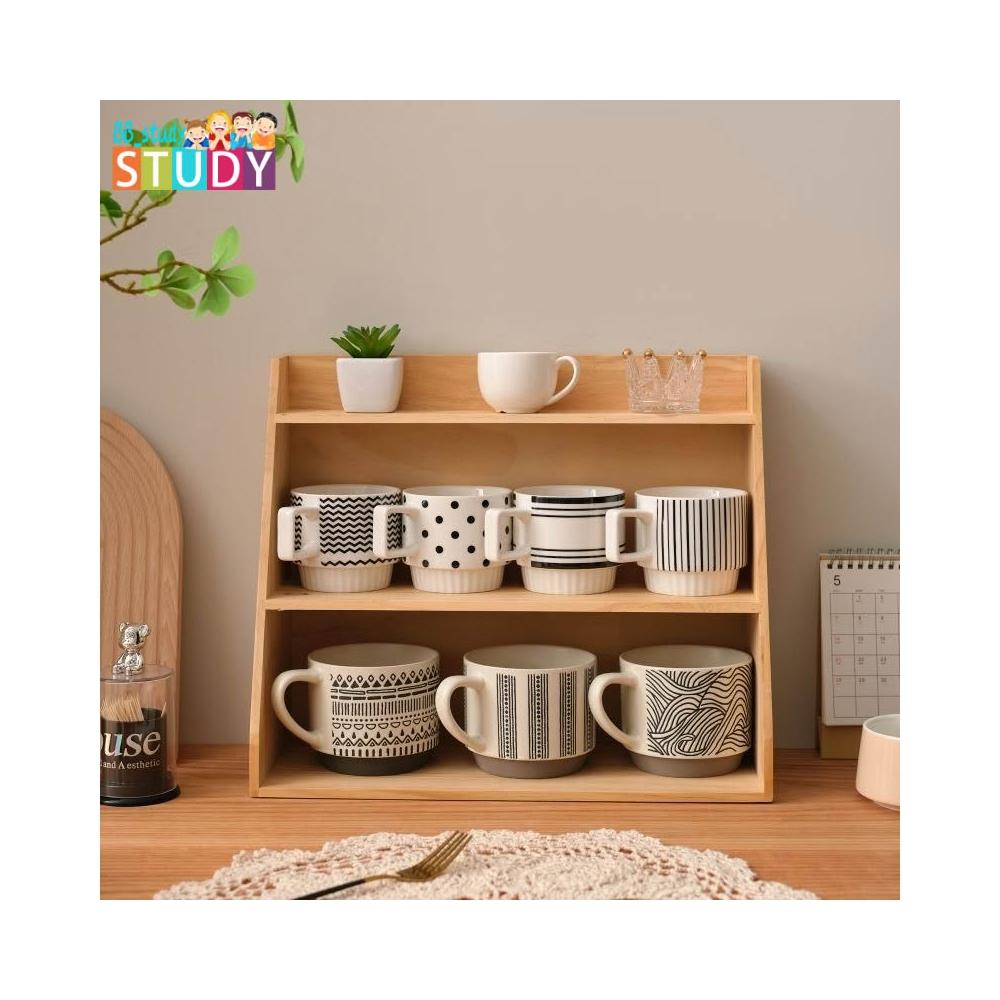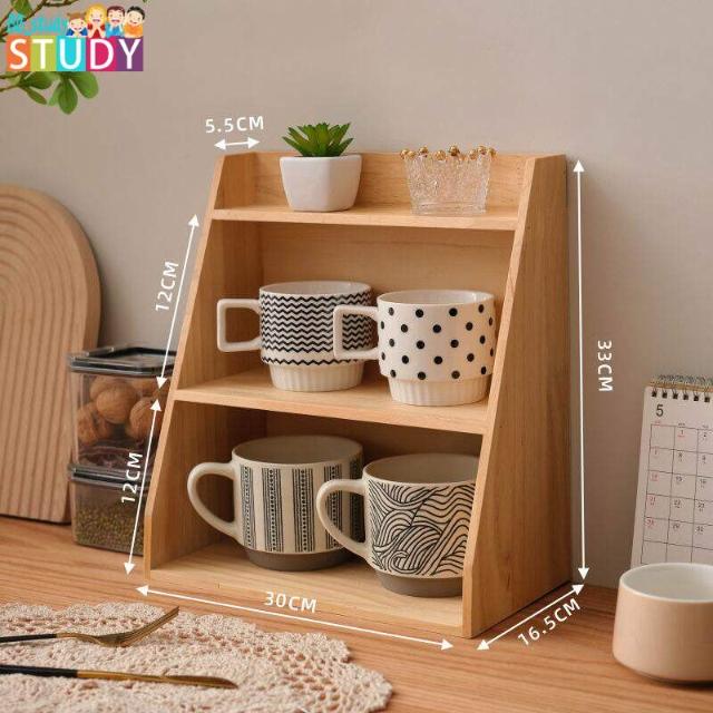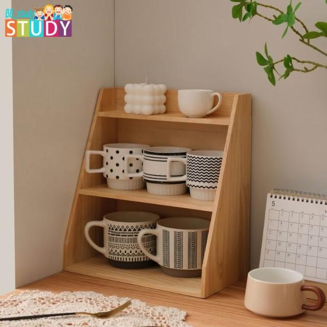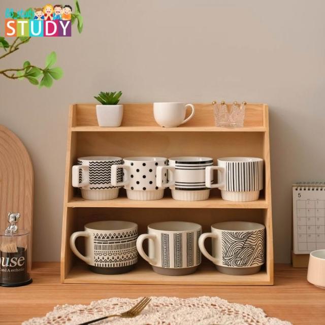 桌面馬克杯收納盒 木質整理復古桌上杯子置物架 實木辦公室收納分層 馬克杯架 展示架 桌上收納 層架 儲物架 茶杯架