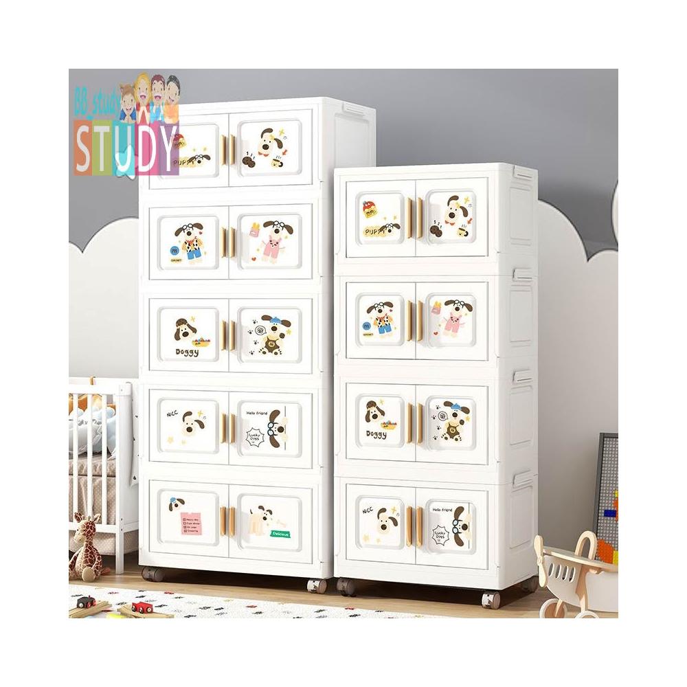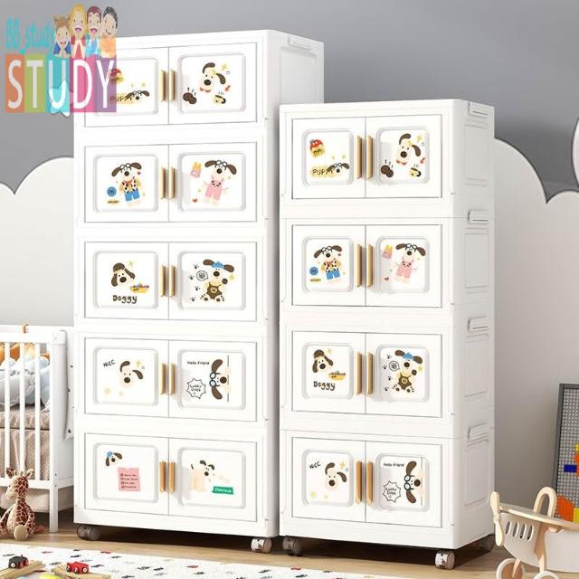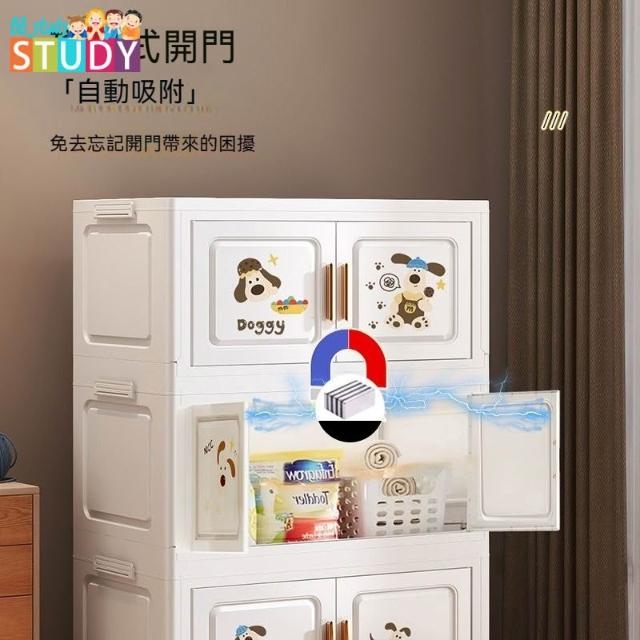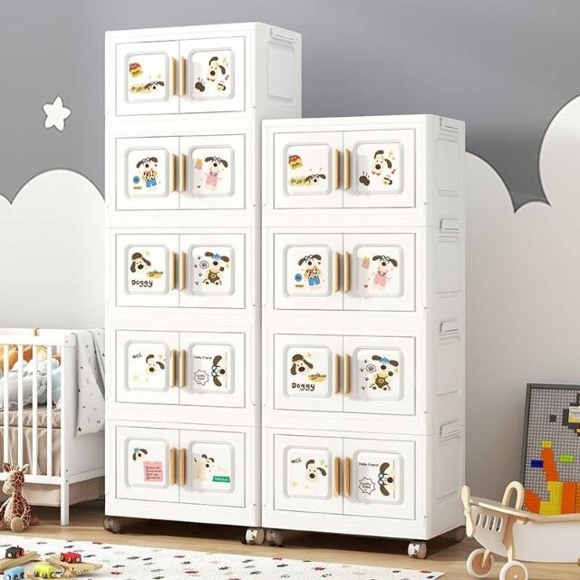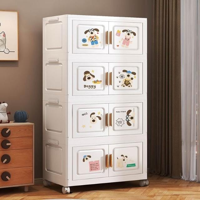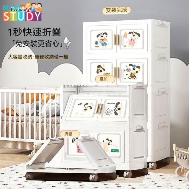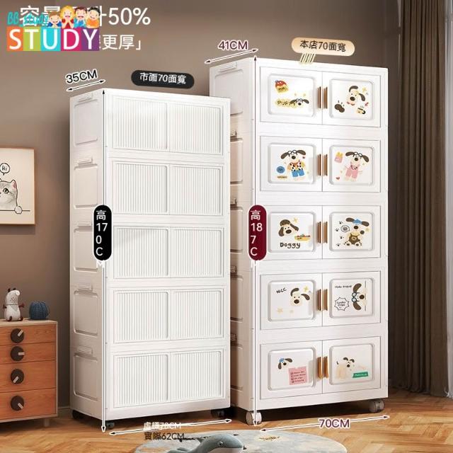 折疊雙開門式推車置物架 宿舍成人衣物收納櫃 客廳防塵免組裝儲物箱 推車置物架 置物架推車 置物櫃 摺疊收納櫃 收納架