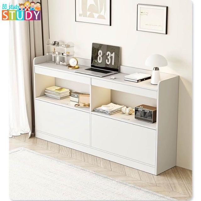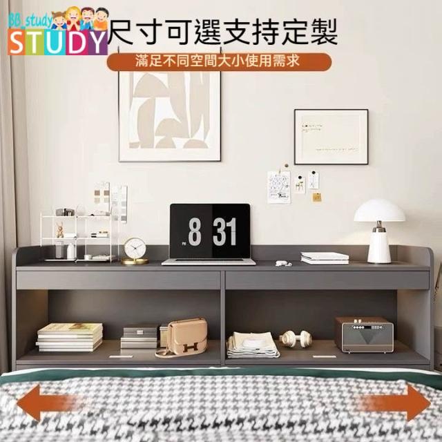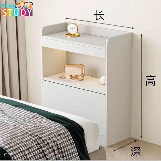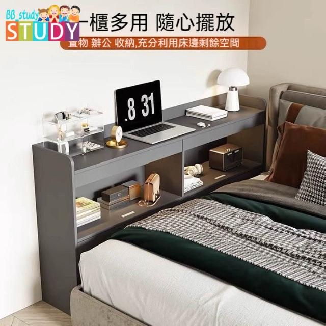 臥室床尾櫃 一體靠著牆床邊櫃 夾縫牆邊長條收納灰色床頭櫃附書架 床尾櫃 床邊櫃 書櫃 長條櫃 床邊夾縫櫃 窄櫃 顆粒板