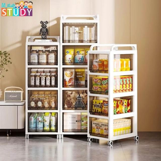 零食收納櫃 可移動落地推車置物架 多功能客廳玩具雜物夾縫收納架 夾縫收納櫃 收納櫃附輪 落地收納櫃 儲物架 手推置物櫃
