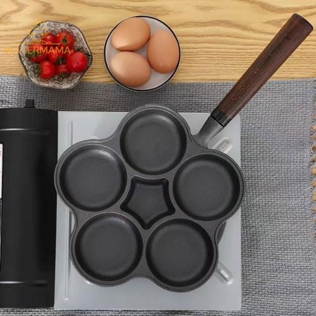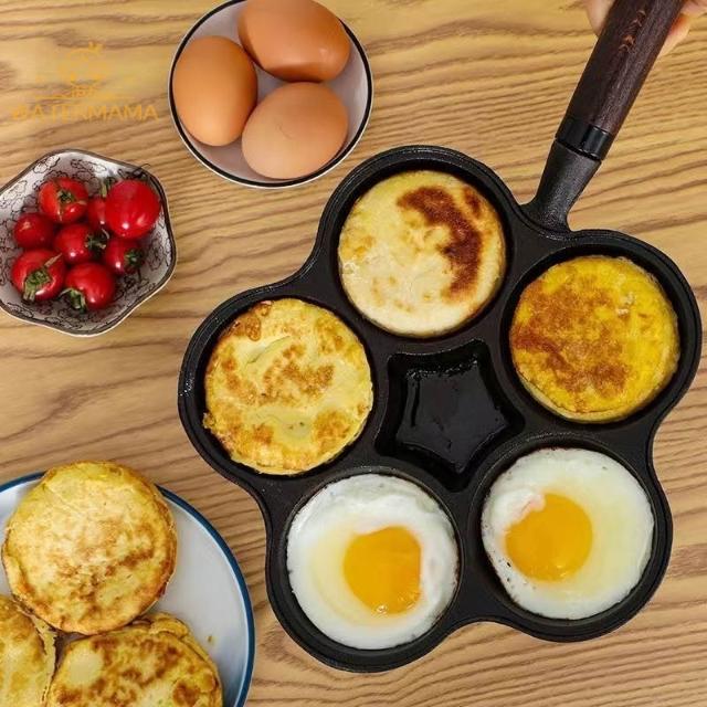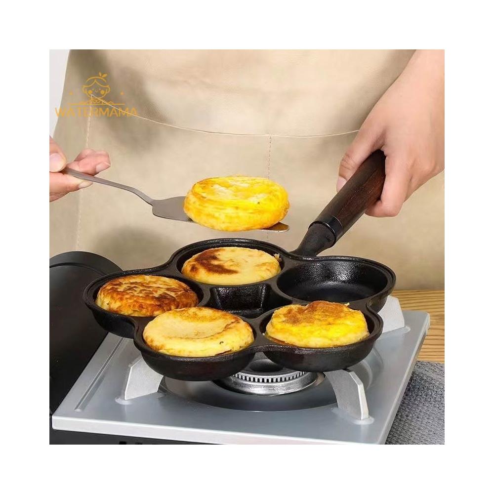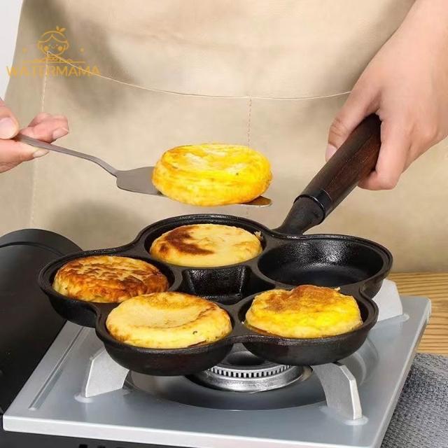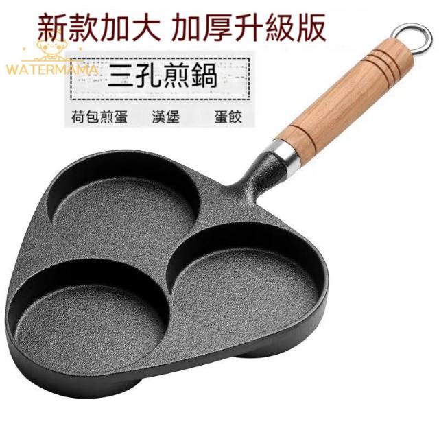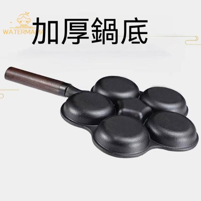 厚鑄鐵鍋 蛋餃鍋 煎蛋鍋 平底鍋 無塗層 加大加深不挑爐灶導熱均勻 蛋餃鍋 四孔不沾鍋 不沾煎蛋鍋 早餐鍋