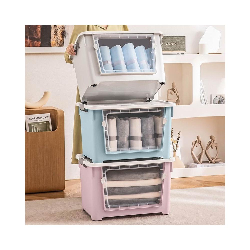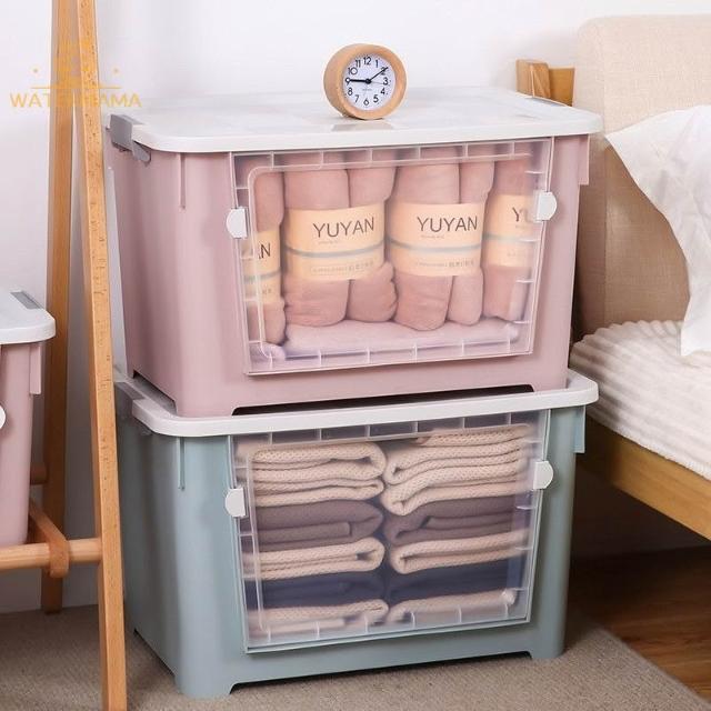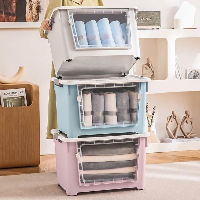 收納箱 前開門式衣服箱 家用特大號塑料整理儲物箱 玩具衣物翻蓋透明箱 收納箱 置物箱 收納盒 衣物收納 收納櫃 堆疊箱