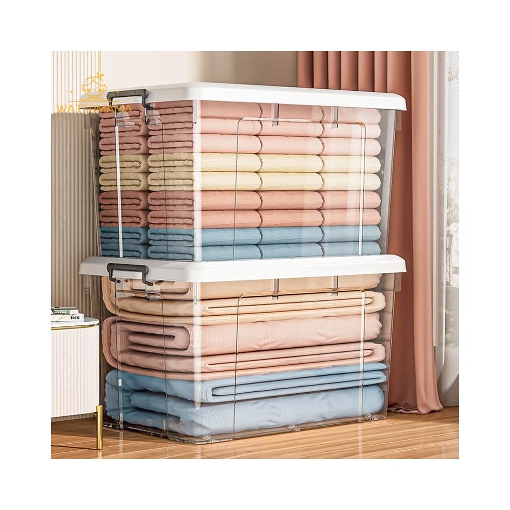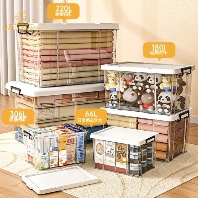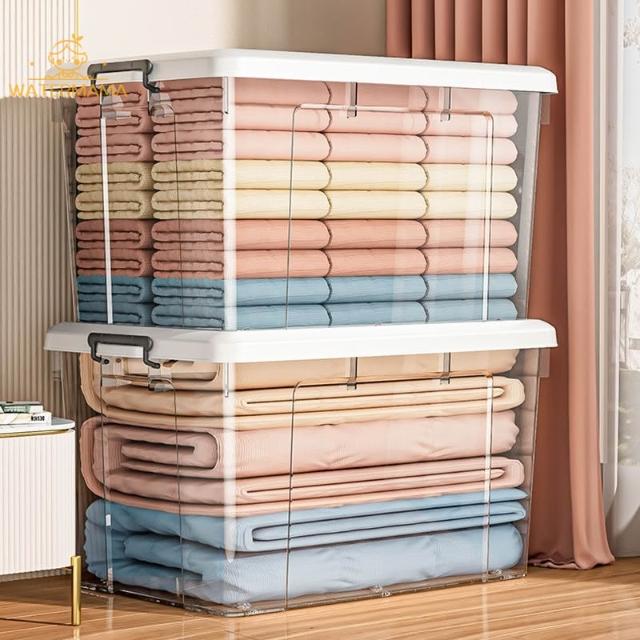 透明塑料收納箱 大容量家用衣服玩具儲物箱 加厚整理箱帶輪子 三開式 收納箱 折疊收納箱 棉被收納箱 衣物收納 床下收納