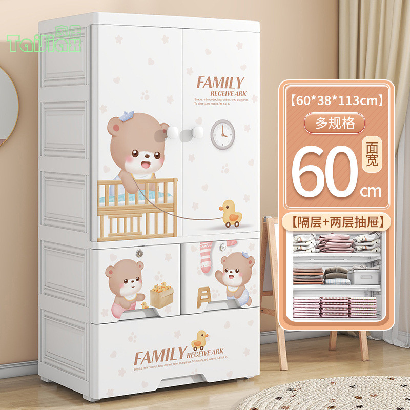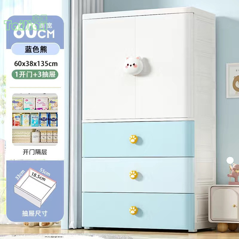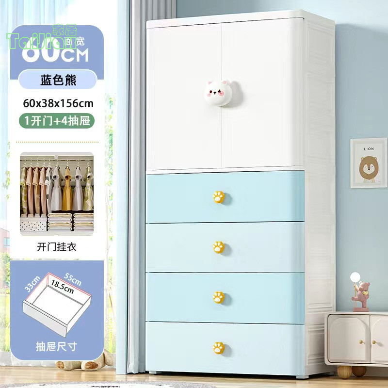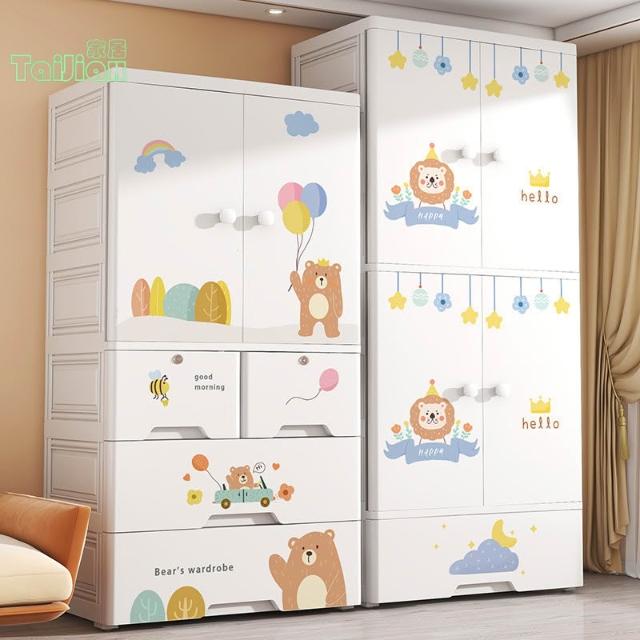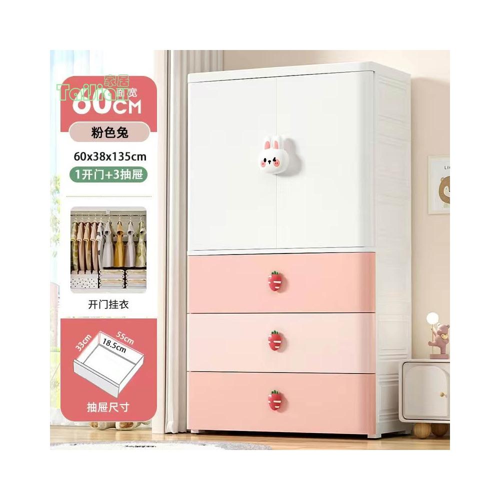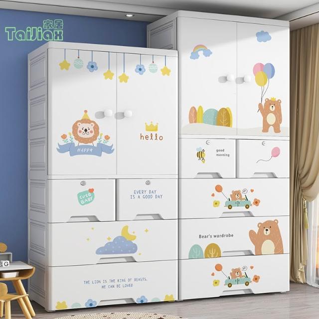 家用雙開門兒童衣櫃 塑料寶寶玩具衣物收納櫃 抽屜式臥室整理儲物櫃 抽屜櫃 衣櫥 櫥櫃 五斗櫃 雜物櫃層櫃
