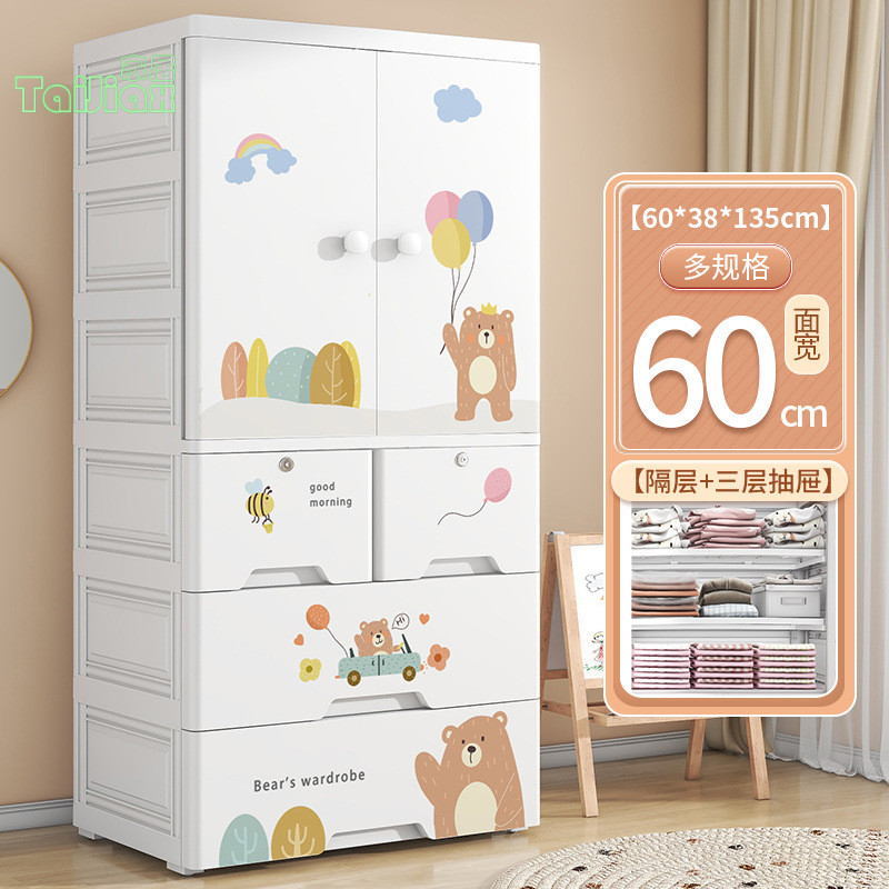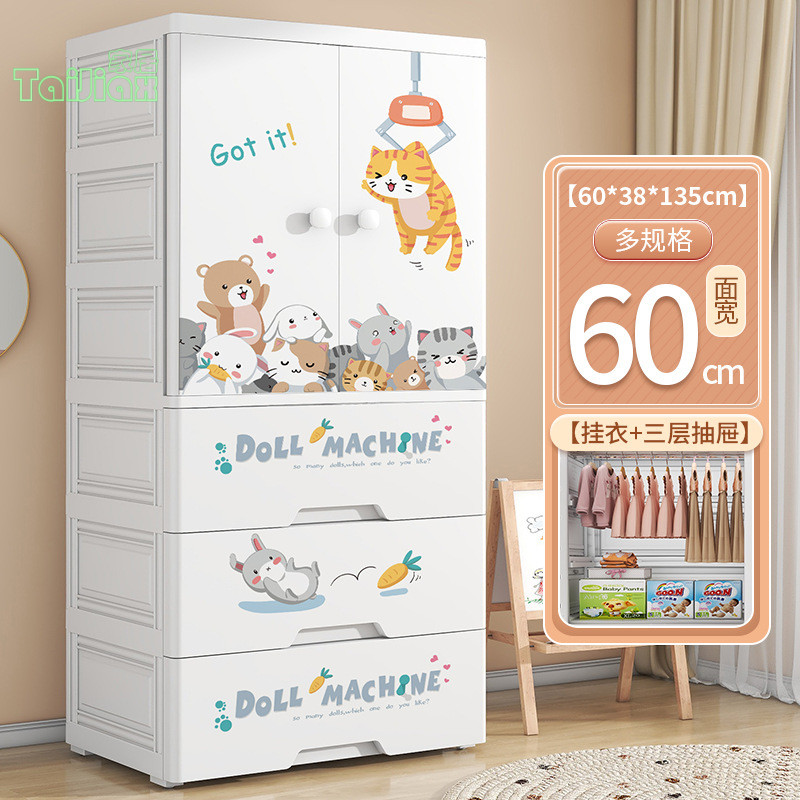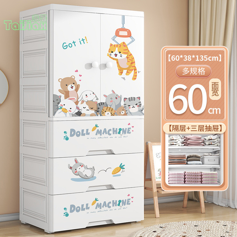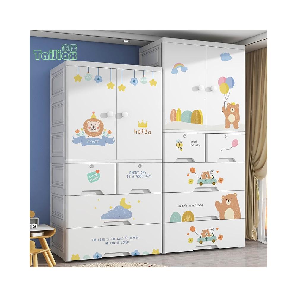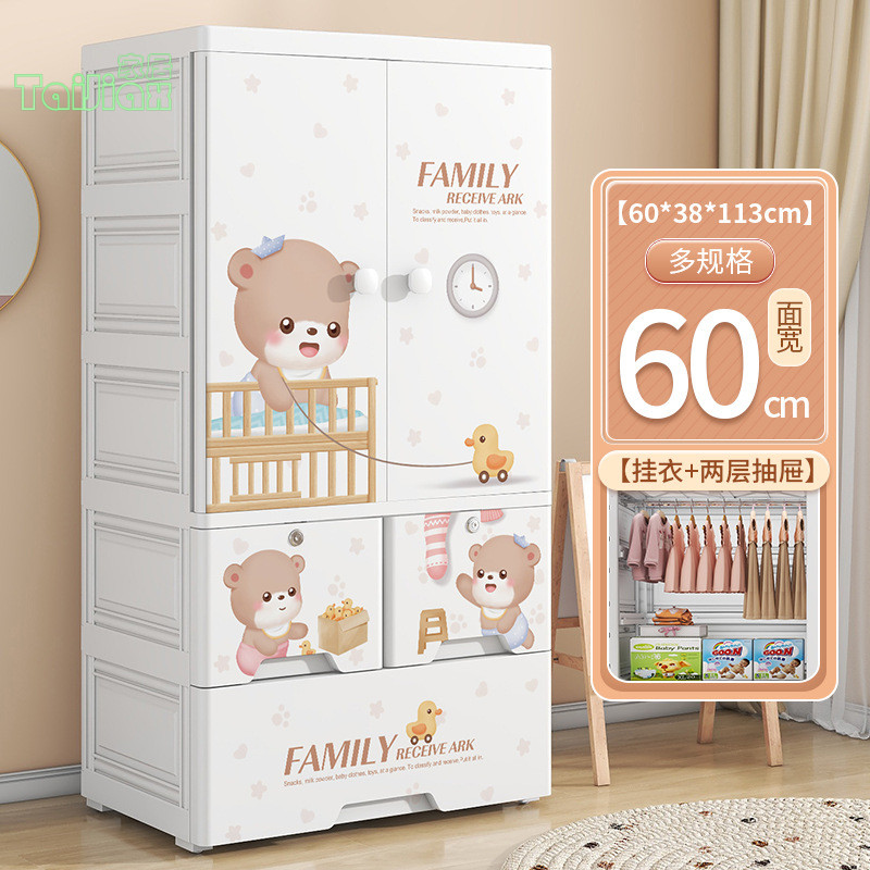 家用雙開門兒童衣櫃 塑料寶寶玩具衣物收納櫃 抽屜式臥室整理儲物櫃 抽屜櫃 衣櫥 櫥櫃 五斗櫃 雜物櫃層櫃