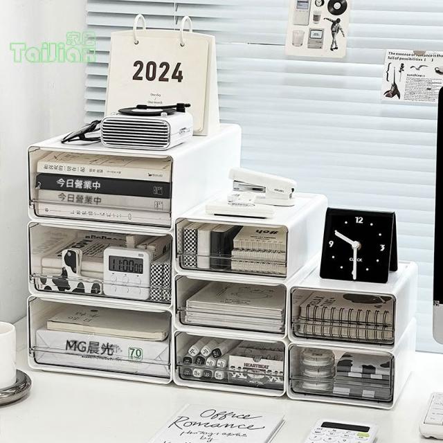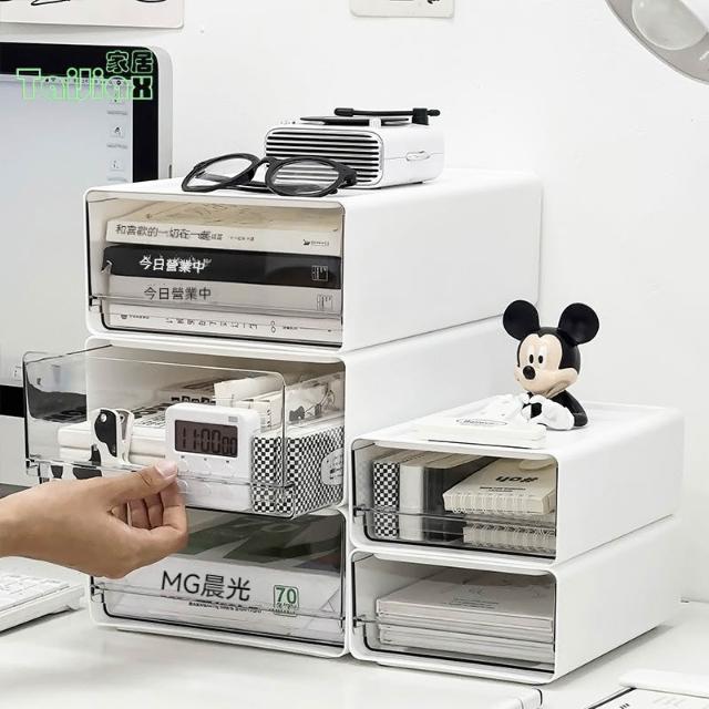 抽屜式收納盒 桌面可疊加A4文件文具儲物櫃 入戶玄關書桌多層置物架 桌上收納 文件收納盒 整理架 雜物盒 儲藏盒