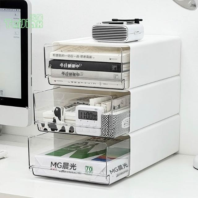 抽屜式收納盒 桌面可疊加A4文件文具儲物櫃 入戶玄關書桌多層置物架 桌上收納 文件收納盒 整理架 雜物盒 儲藏盒