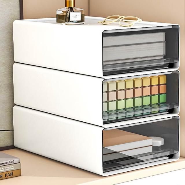 抽屜式收納盒 桌面可疊加A4文件文具儲物櫃 入戶玄關書桌多層置物架 桌上收納 文件收納盒 整理架 雜物盒 儲藏盒