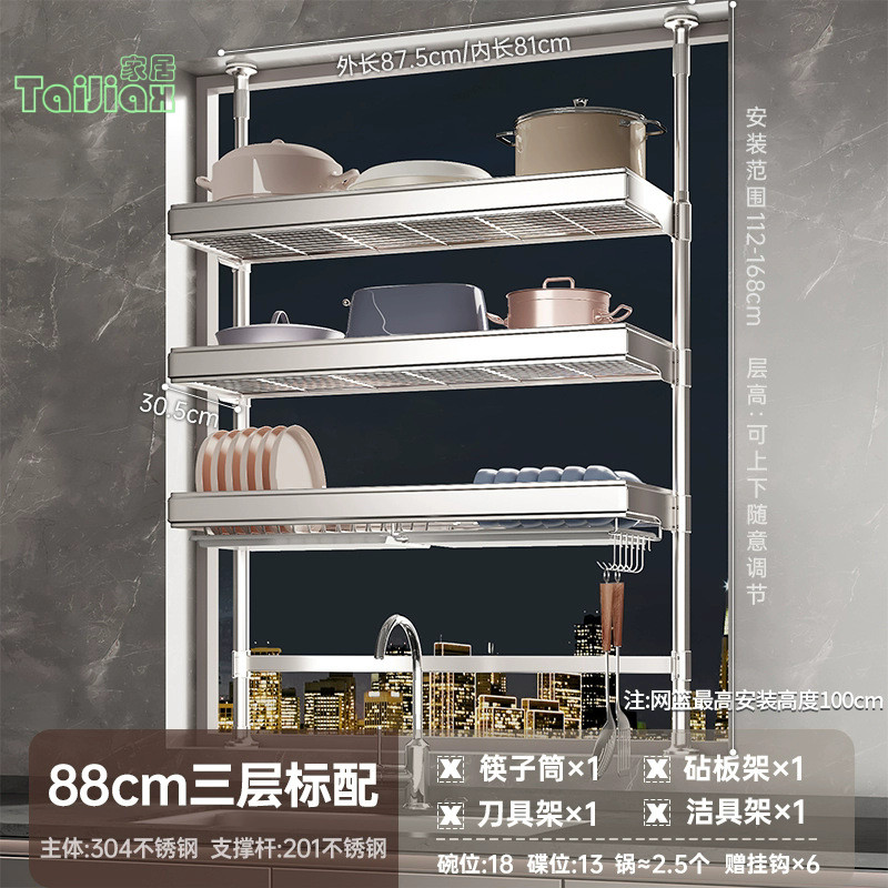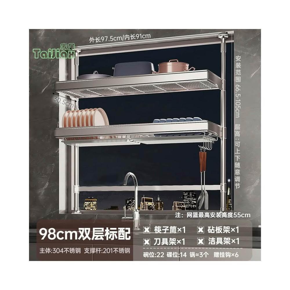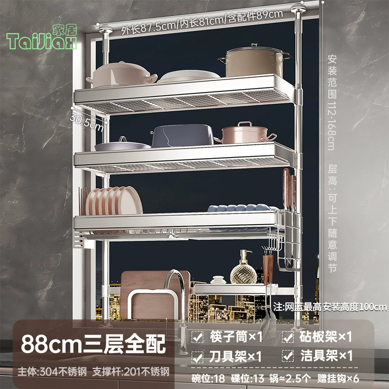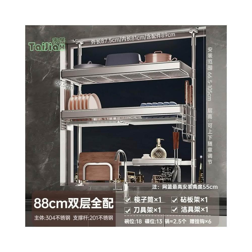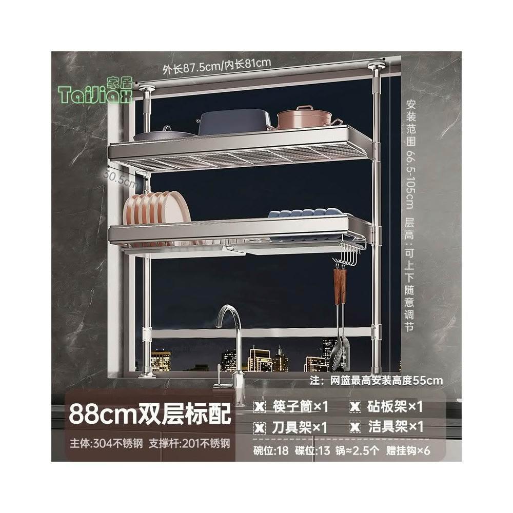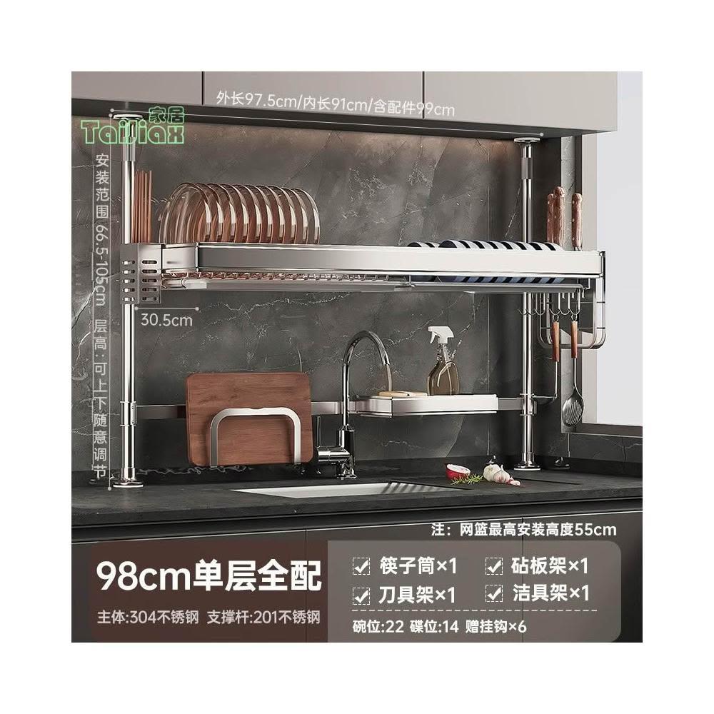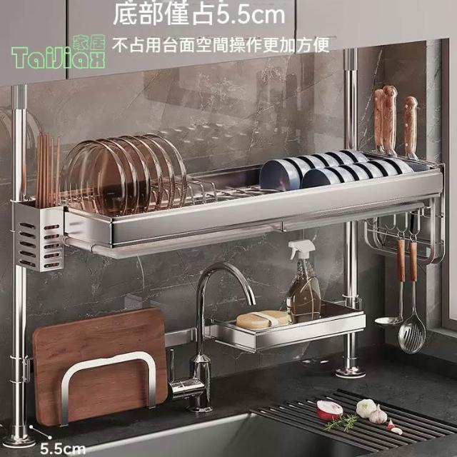 💥304不鏽鋼置物架 廚房頂天立地不銹鋼水槽洗碗槽水池置物架 瀝水架 放碗盤碗碟收納架 廚房收納架 廚房瀝水架 水槽板