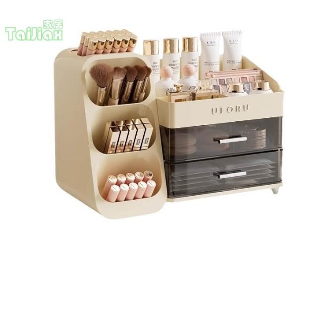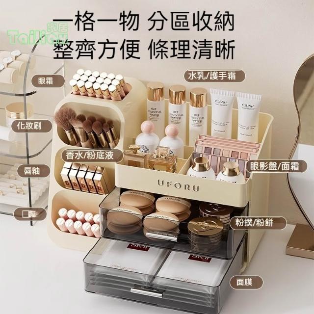 桌面化妝品收納盒 梳妝台家用護膚品置物架 高級整理盒 防塵化妝箱 桌上收納 桌面收納盒 化妝品櫃 收納架