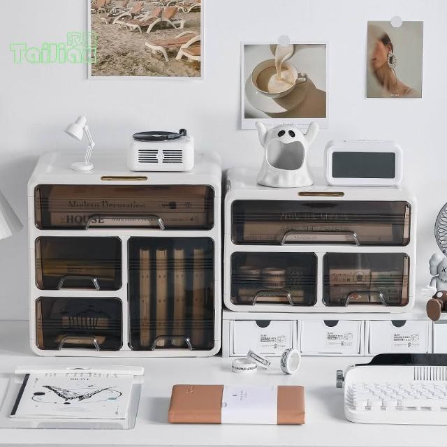 💥 桌面收納盒 透明文具辦公桌置物架 宿舍雜物收納盒 化妝抽屜式整理盒 文具收納盒 桌上收納架 桌面抽屜 小抽屜