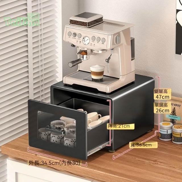 💥咖啡機架 置物架 擺放台檯麵茶包膠囊桌面餐邊櫃 抽屜收納防塵杯架 咖啡置物架 桌面置物架 茶包收納 收納杯架 杯架櫃