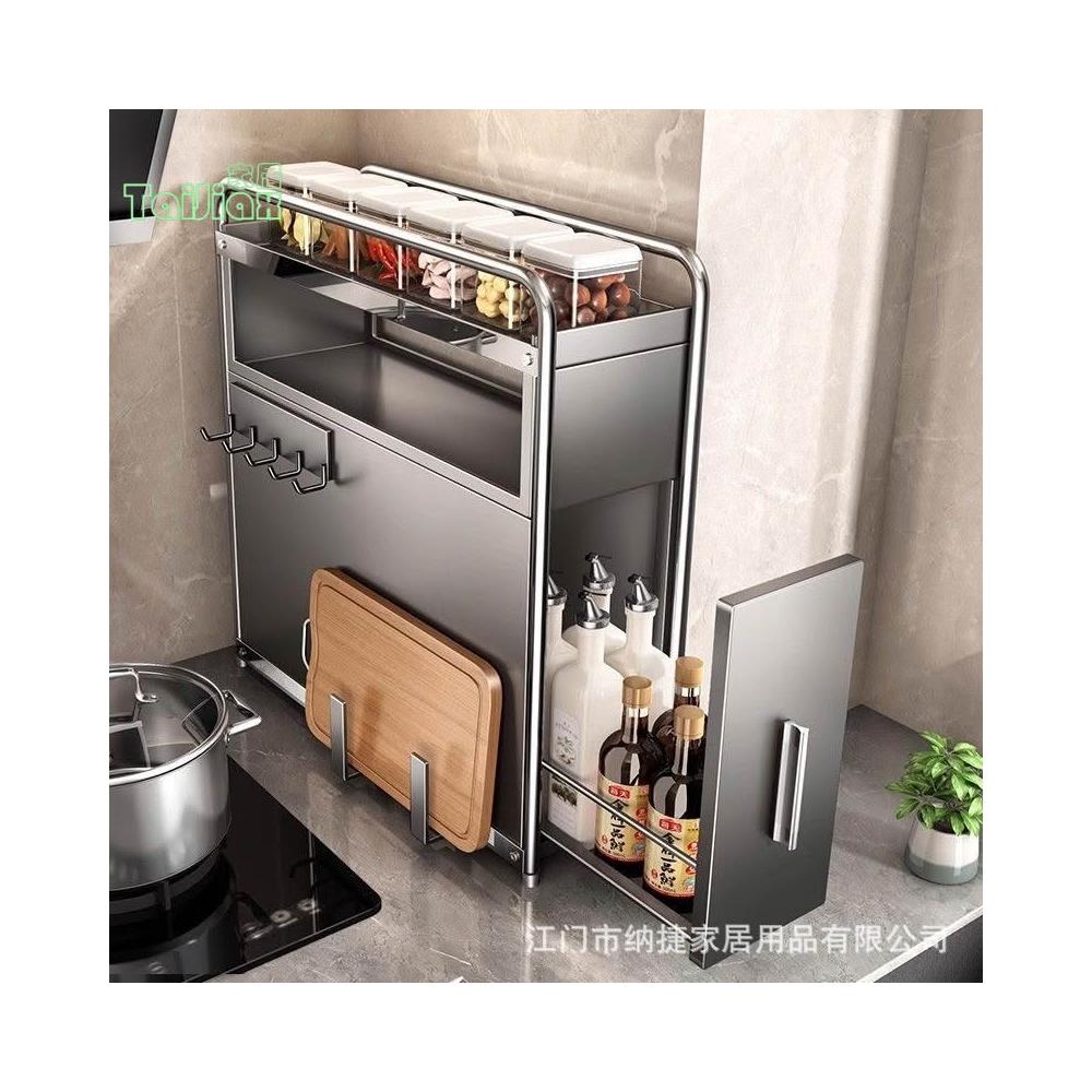 💥💕廚房家用多功能窄邊櫃 抽拉調味料檯面櫃 多層置物架 味精鹽罐調味品收納架 置物架 儲物架 廚房層架醬料收納架層架