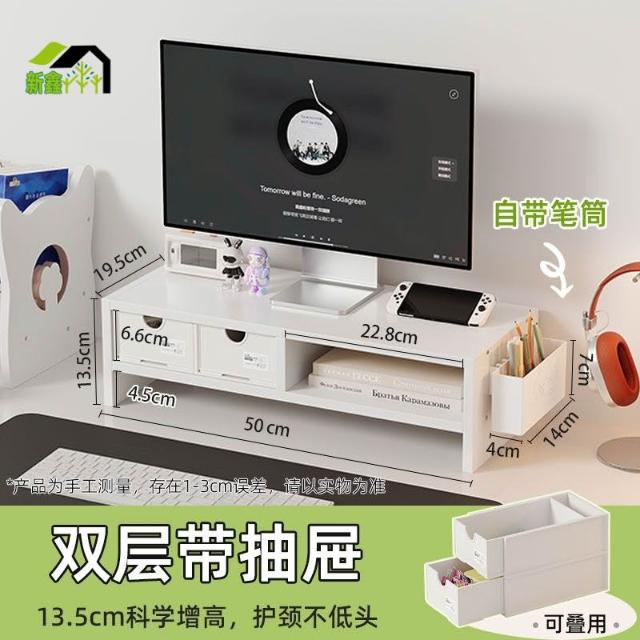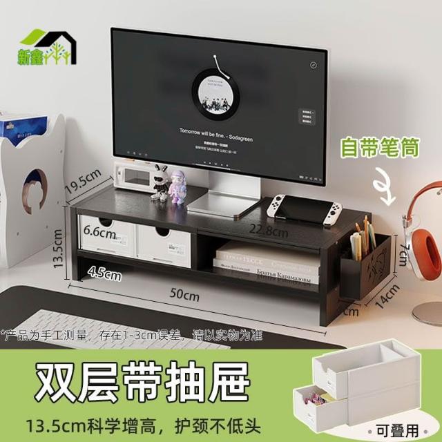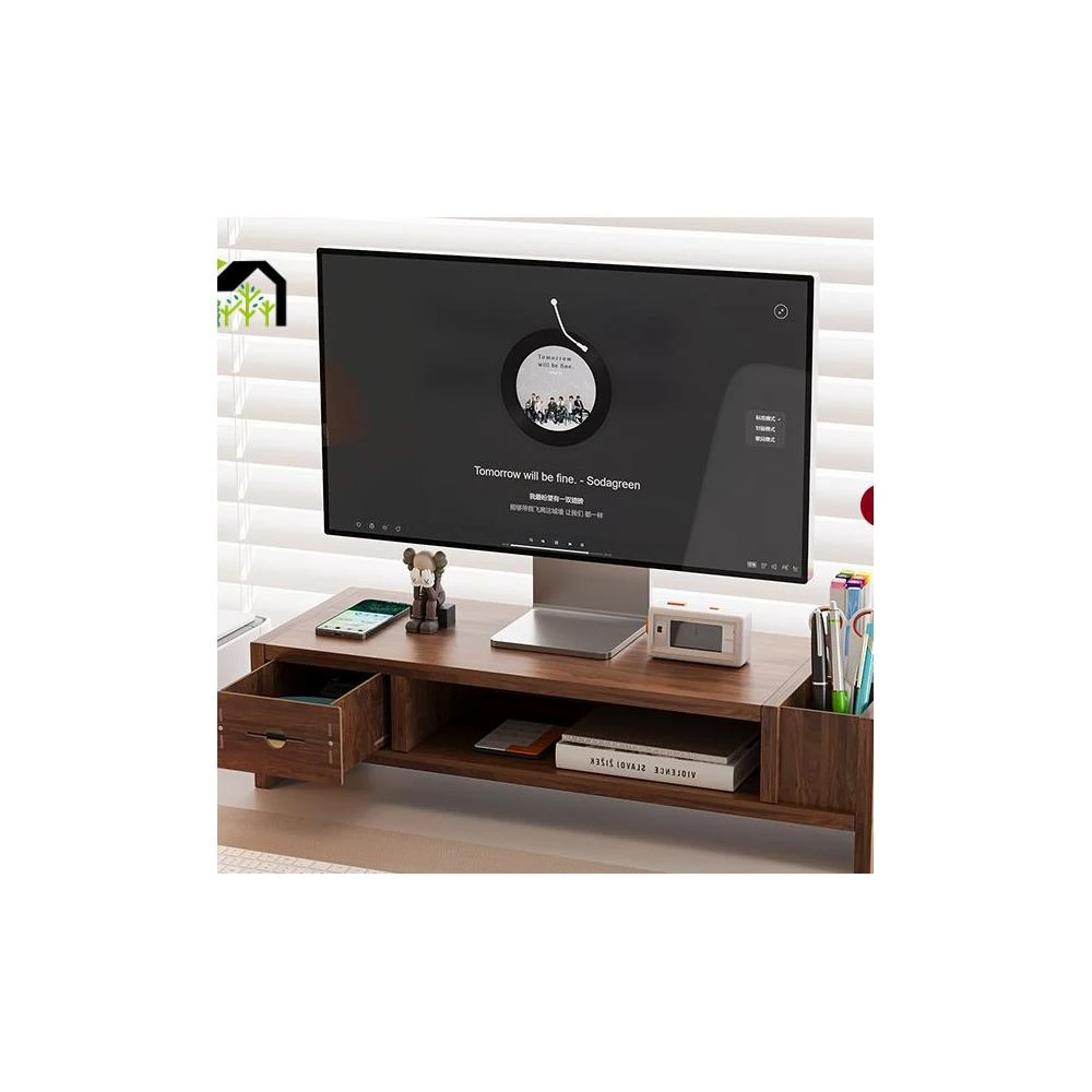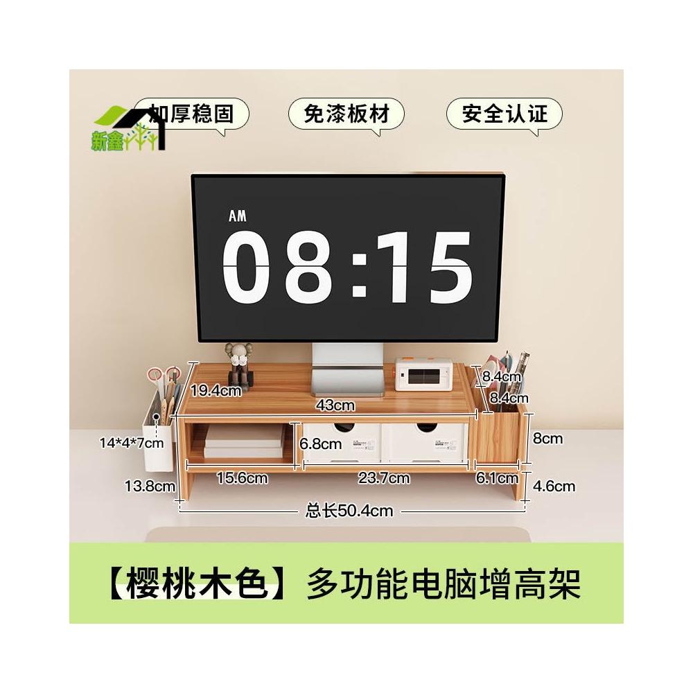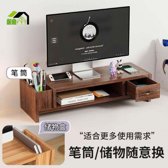 胡桃色電腦增高架辦公室桌面台式顯示器屏幕置物架支撐架收納盒