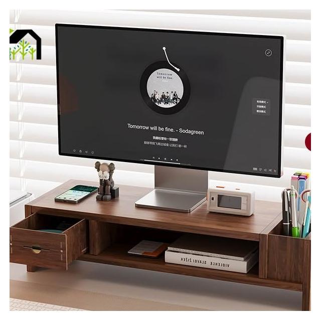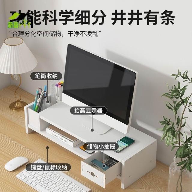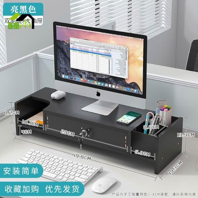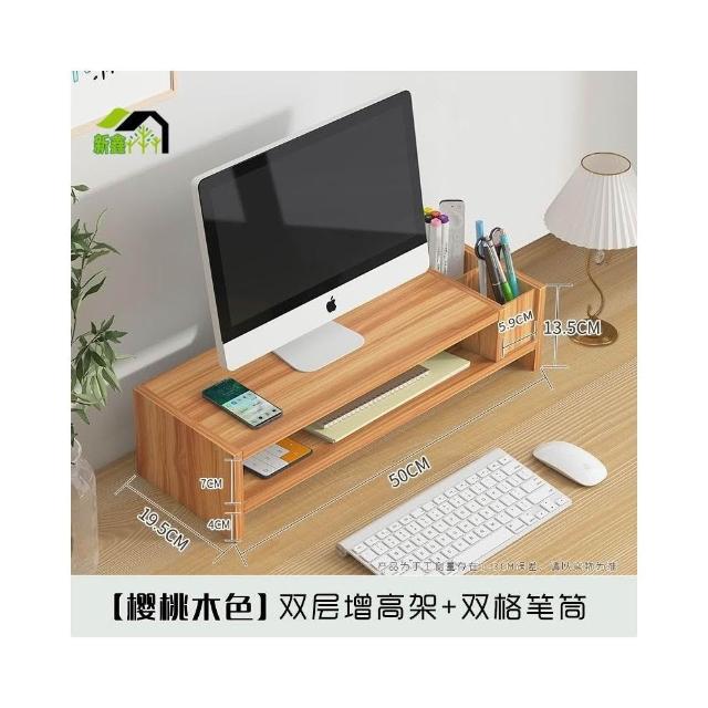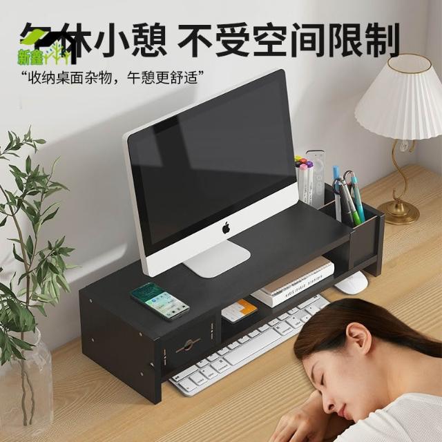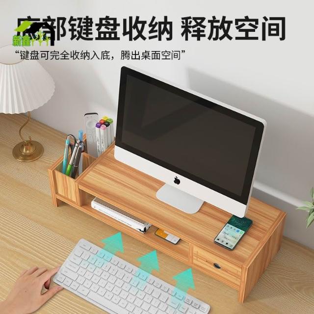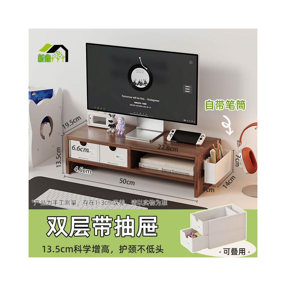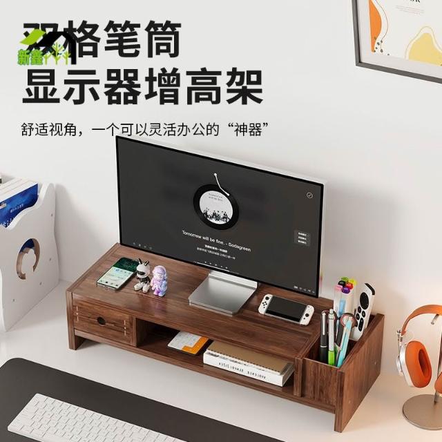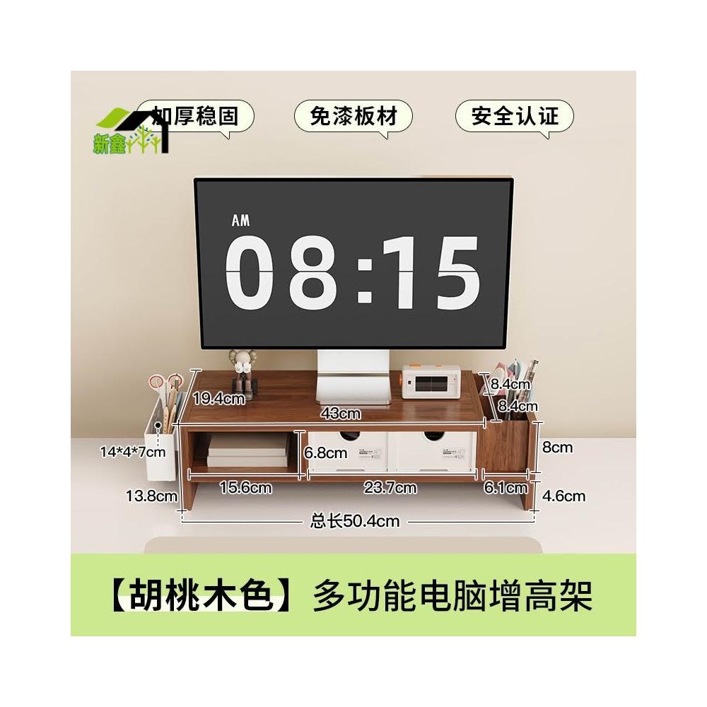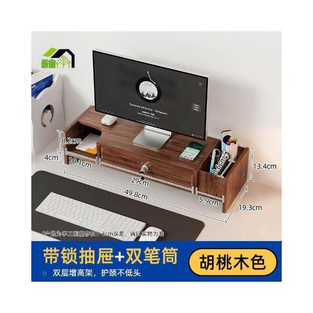 胡桃色電腦增高架辦公室桌面台式顯示器屏幕置物架支撐架收納盒