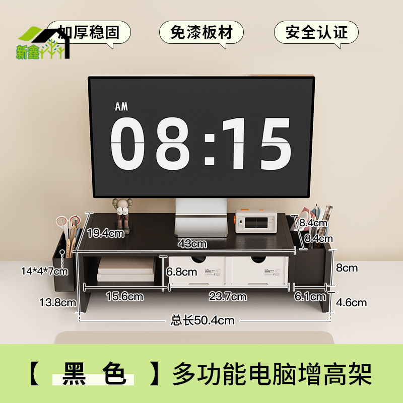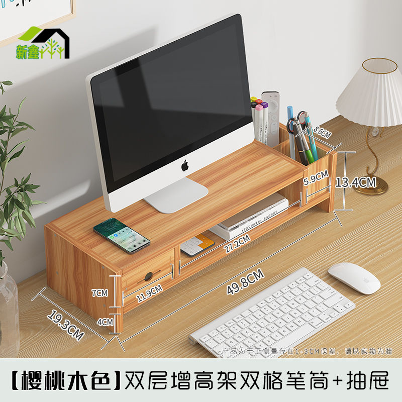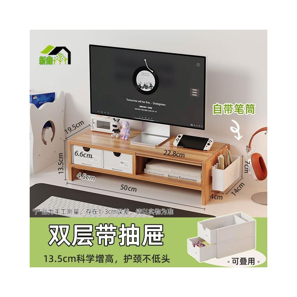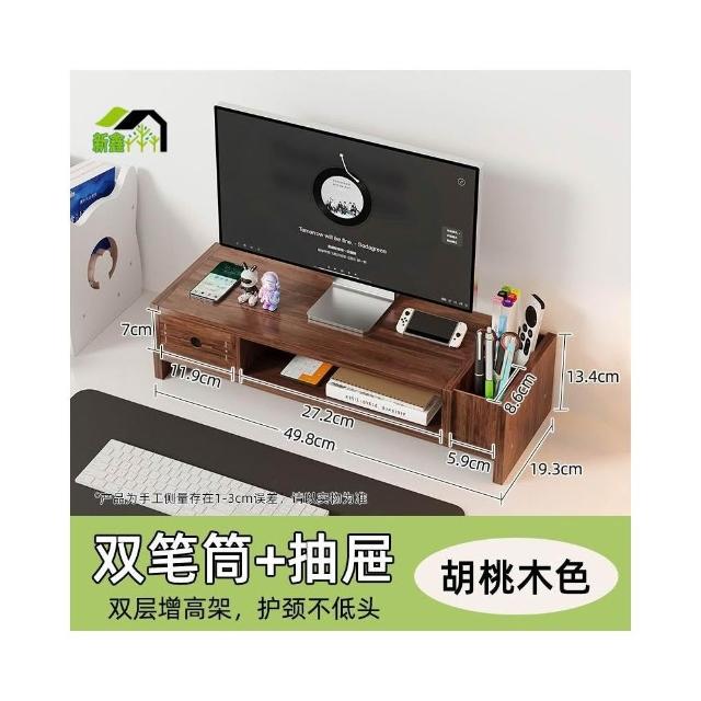 胡桃色電腦增高架辦公室桌面台式顯示器屏幕置物架支撐架收納盒