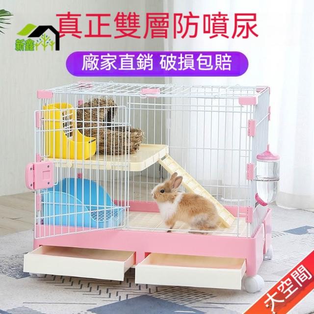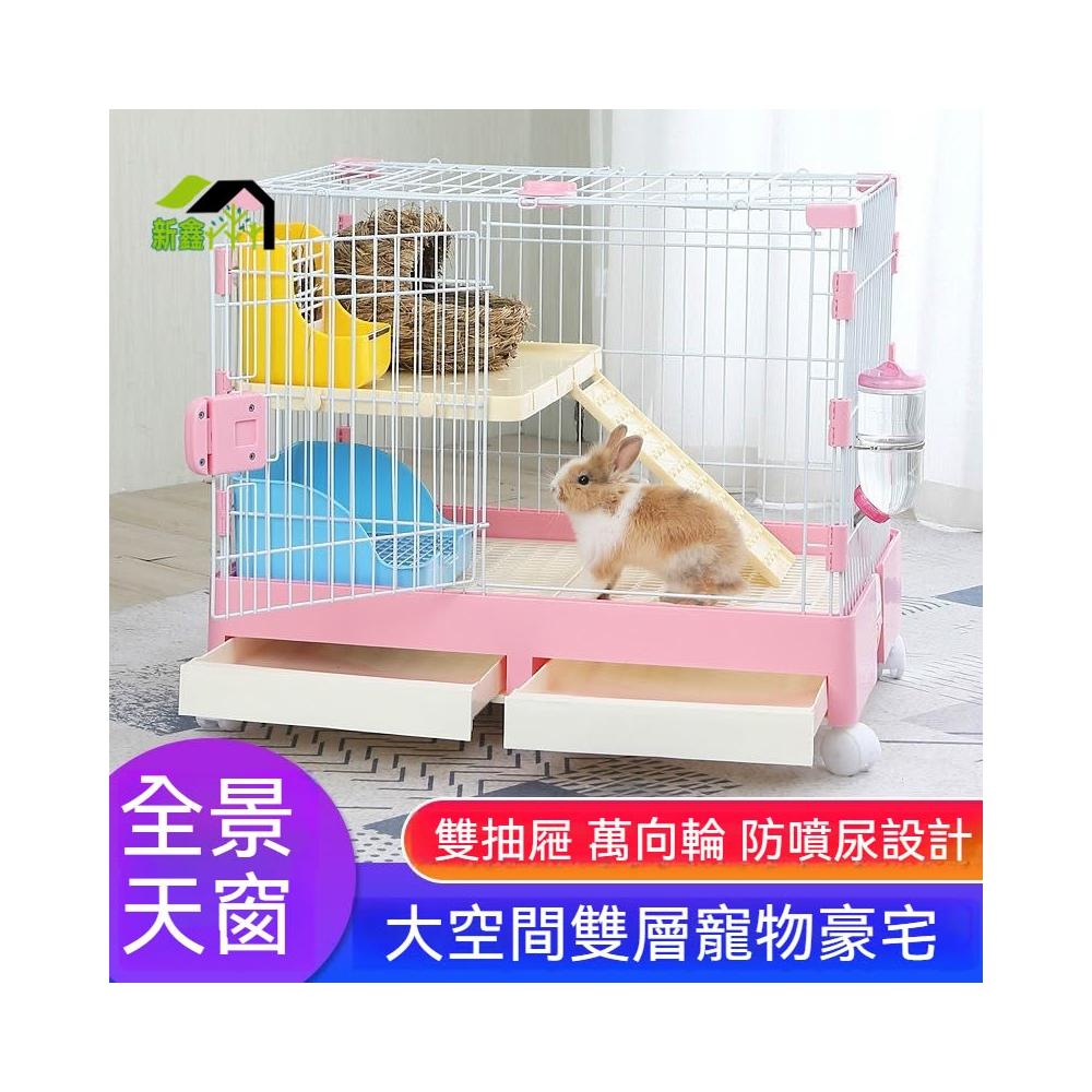 特大號兔籠 兔子籠 自動清糞防噴尿雙層兔籠子 荷蘭豬龍貓籠子用品 抽屜式寵物籠 鐵籠 耐咬耐啃 天窗設計 寵物鐵籠子