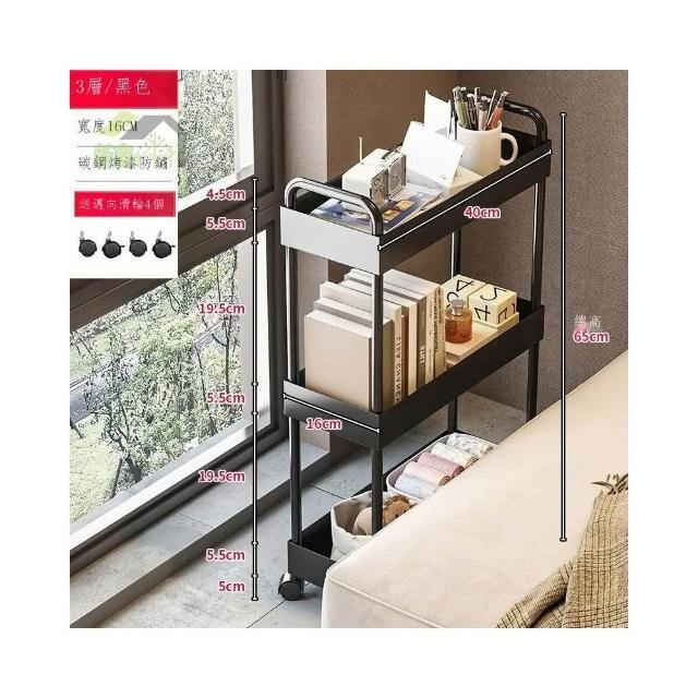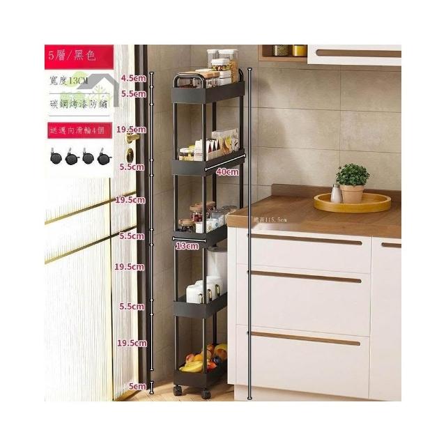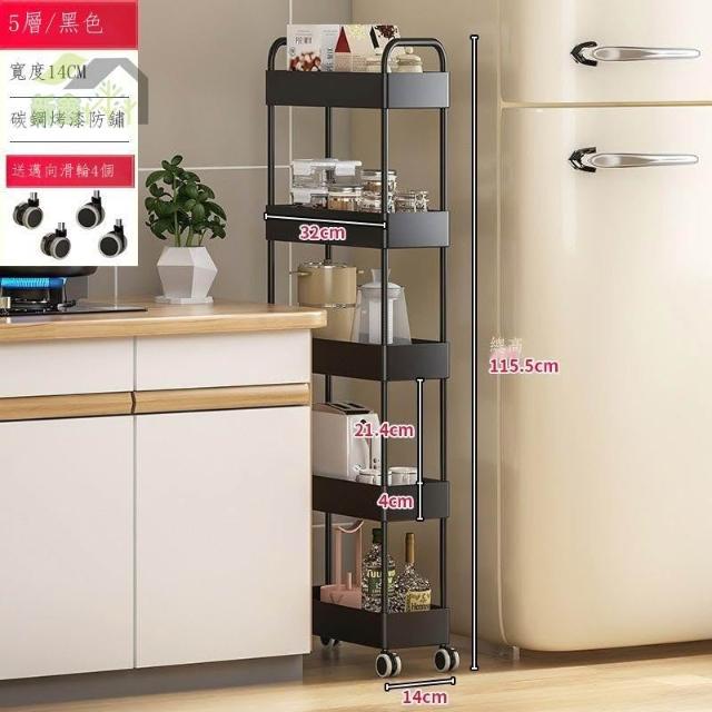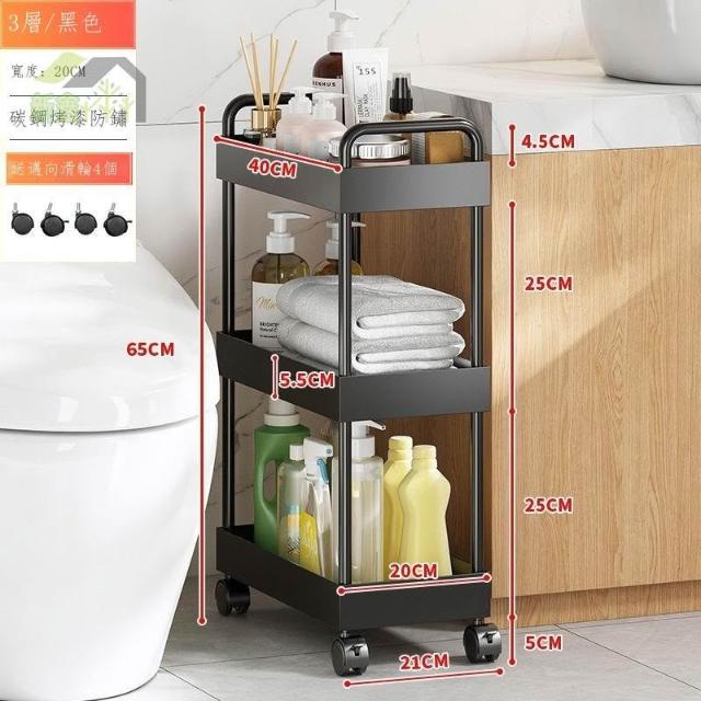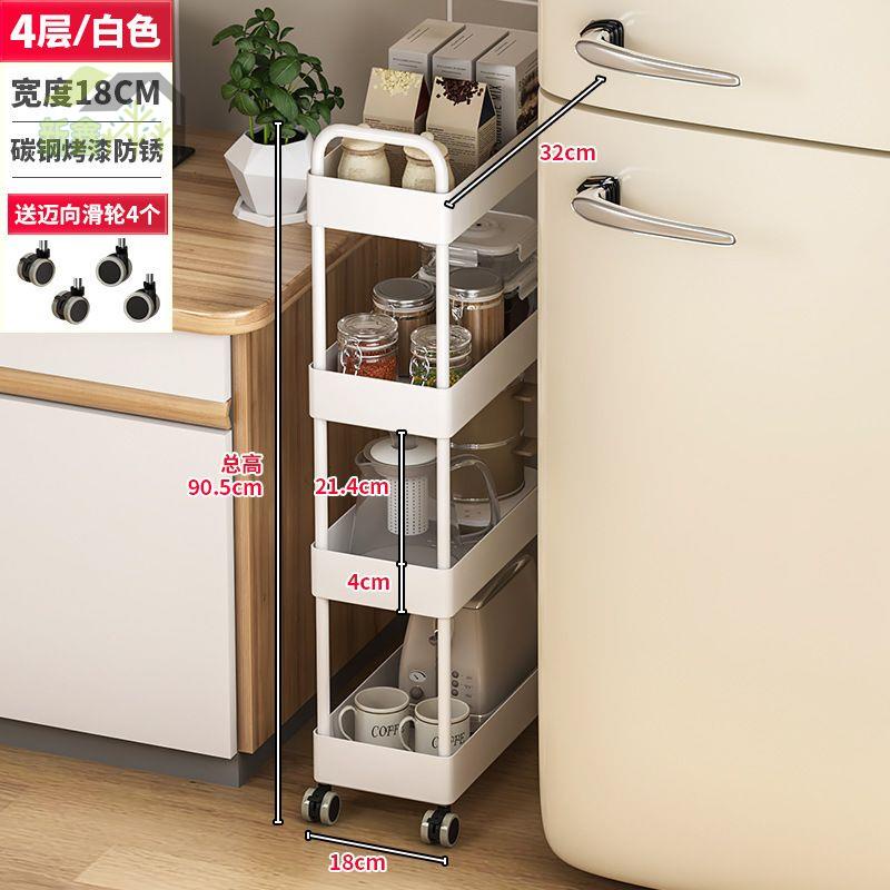 碳鋼廚房夾縫置物架 衛生間超窄縫隙置物櫃 冰箱側收納窄縫收納櫃 收納置物架 收納推車 置物架推車 置物推車 四層推車