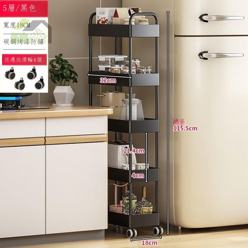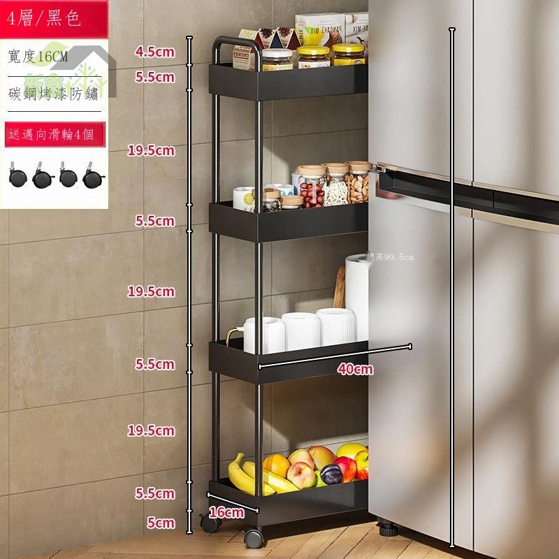 碳鋼廚房夾縫置物架 衛生間超窄縫隙置物櫃 冰箱側收納窄縫收納櫃 收納置物架 收納推車 置物架推車 置物推車 四層推車