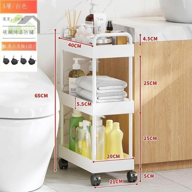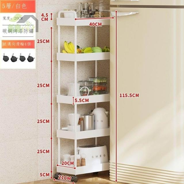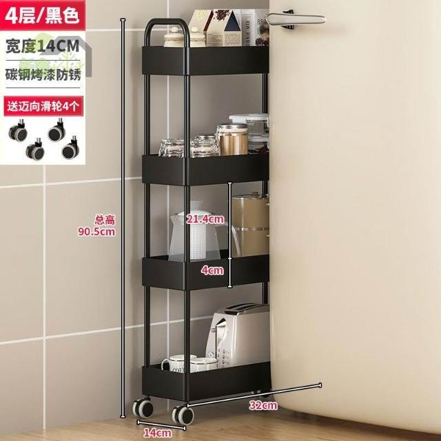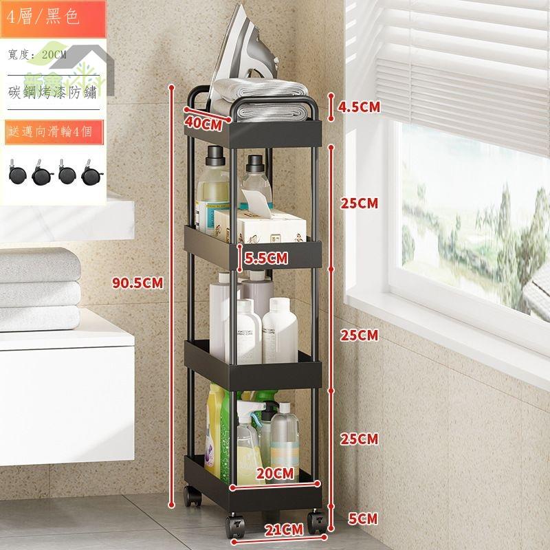 碳鋼廚房夾縫置物架 衛生間超窄縫隙置物櫃 冰箱側收納窄縫收納櫃 收納置物架 收納推車 置物架推車 置物推車 四層推車