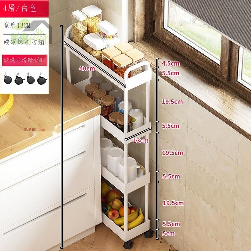 碳鋼廚房夾縫置物架 衛生間超窄縫隙置物櫃 冰箱側收納窄縫收納櫃 收納置物架 收納推車 置物架推車 置物推車 四層推車
