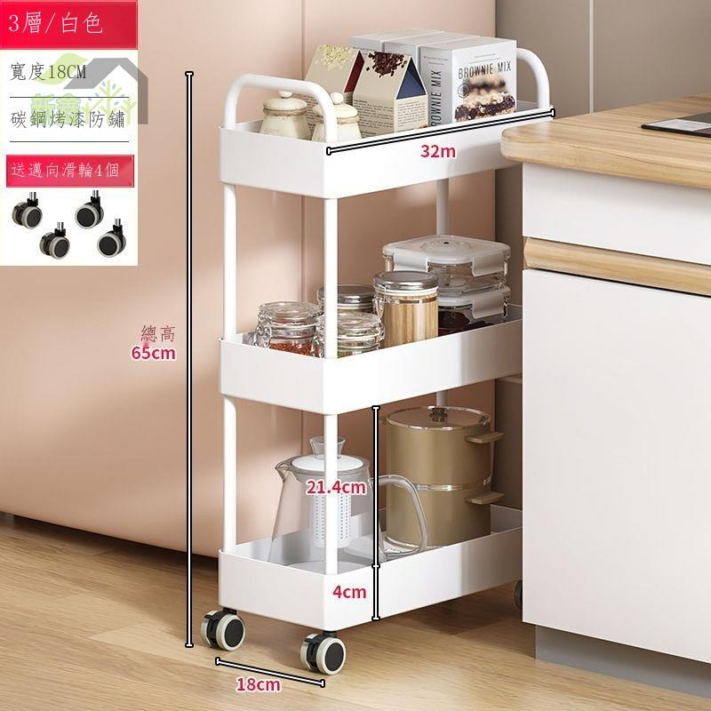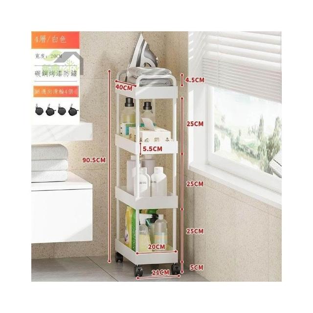 碳鋼廚房夾縫置物架 衛生間超窄縫隙置物櫃 冰箱側收納窄縫收納櫃 收納置物架 收納推車 置物架推車 置物推車 四層推車