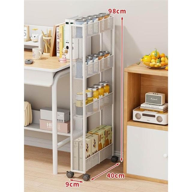 居家角落夾縫零食收納架 客廳多層整理架 落地式小推車置物架 衛生間窄縫儲物櫃 空間利用收納車 廚房隙縫櫃 靈活移動整理