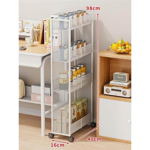 居家角落夾縫零食收納架 客廳多層整理架 落地式小推車置物架 衛生間窄縫儲物櫃 空間利用收納車 廚房隙縫櫃 靈活移動整理