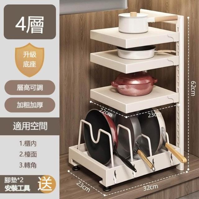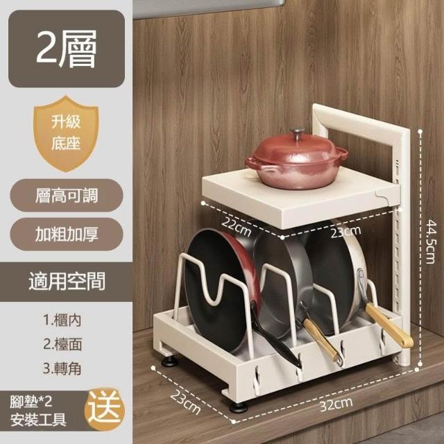 廚房鍋具收納架 多功能櫥櫃下水槽置物架 流理台底層多層 空間利用整理層架 居家主婦料理空間規劃 鑄鐵鍋平底鍋專用架
