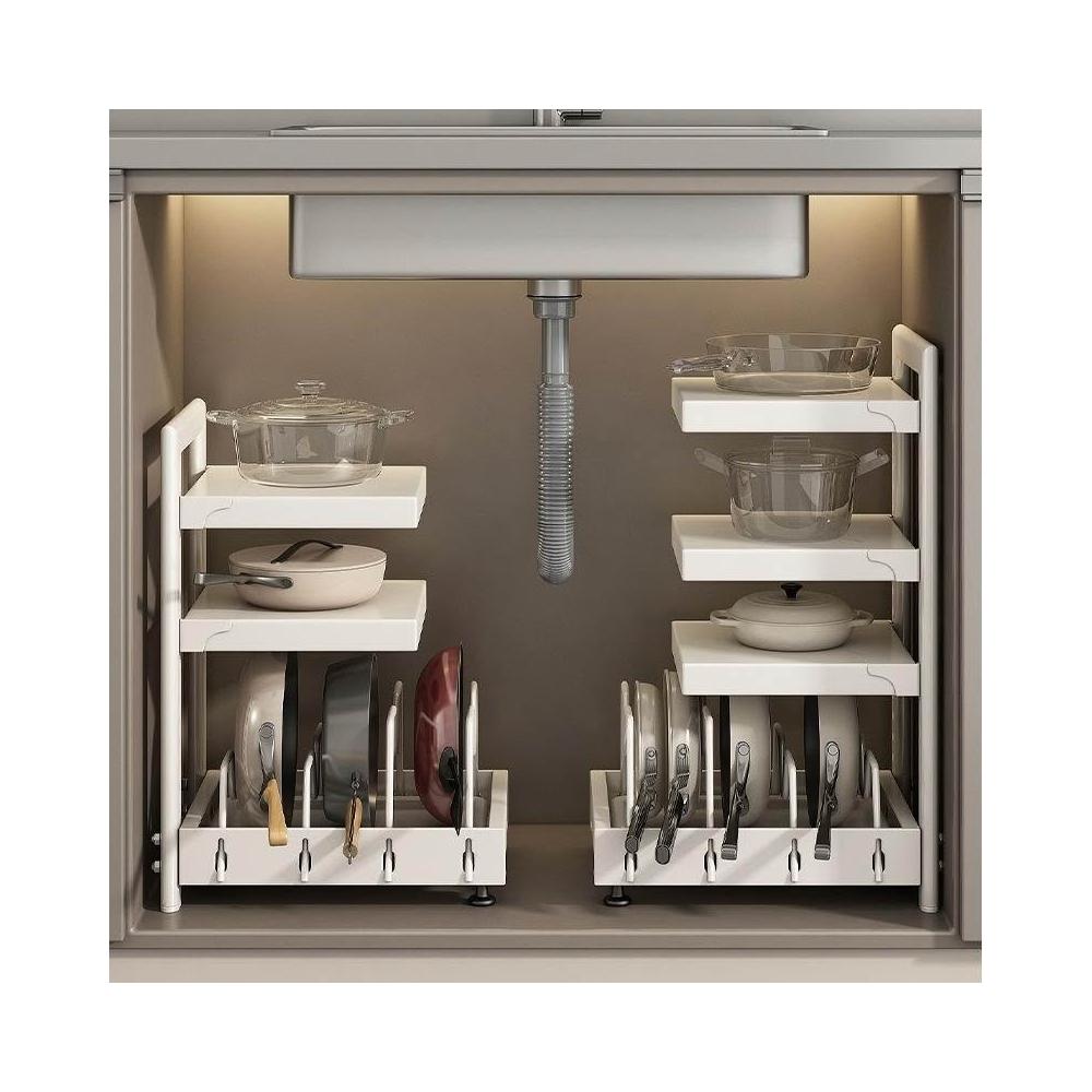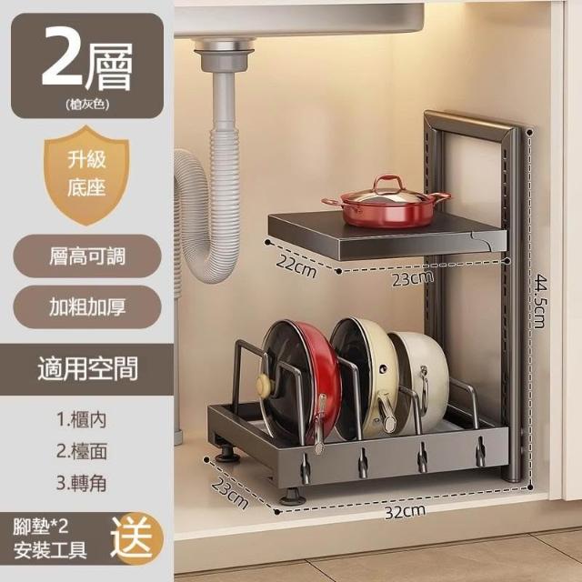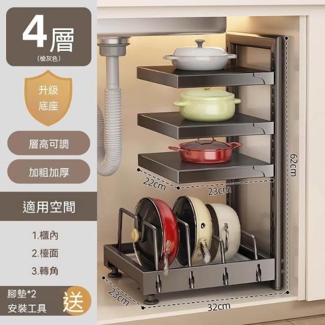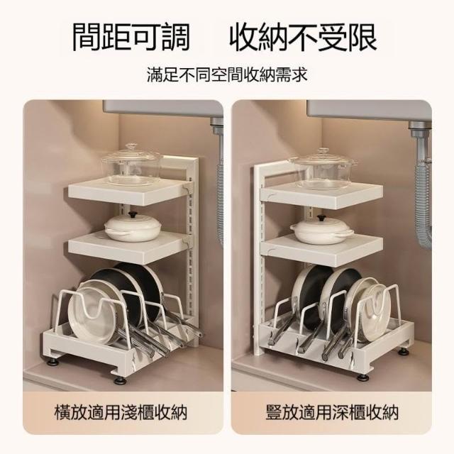 廚房鍋具收納架 多功能櫥櫃下水槽置物架 流理台底層多層 空間利用整理層架 居家主婦料理空間規劃 鑄鐵鍋平底鍋專用架