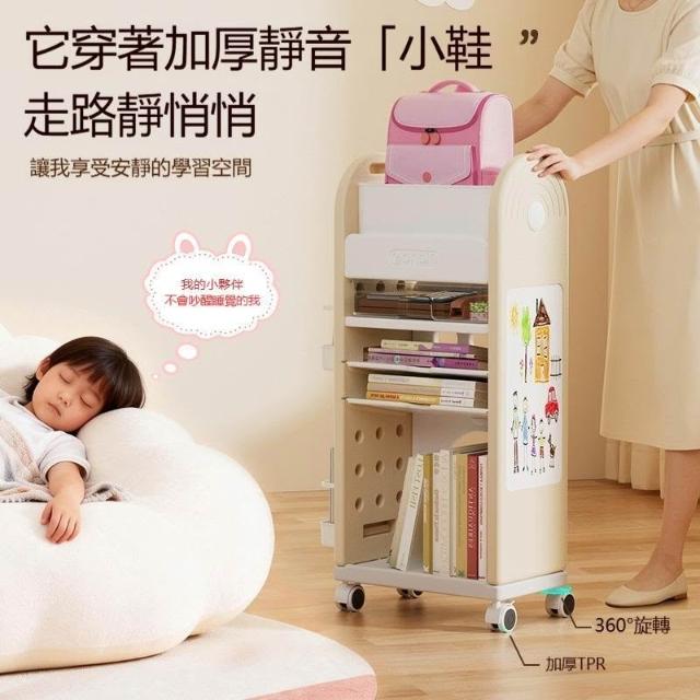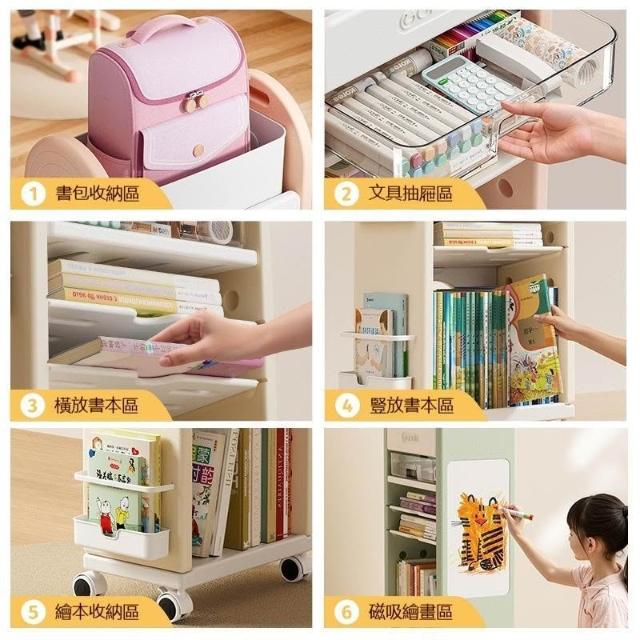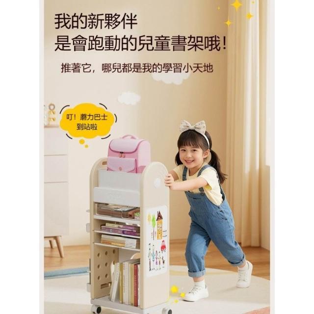 五層大容量兒童移動書架 落地式多層書包收納推車 附輪可推動繪本玩具書櫃子 新手爸媽育兒閱讀環境規劃 居家學習分類整理架