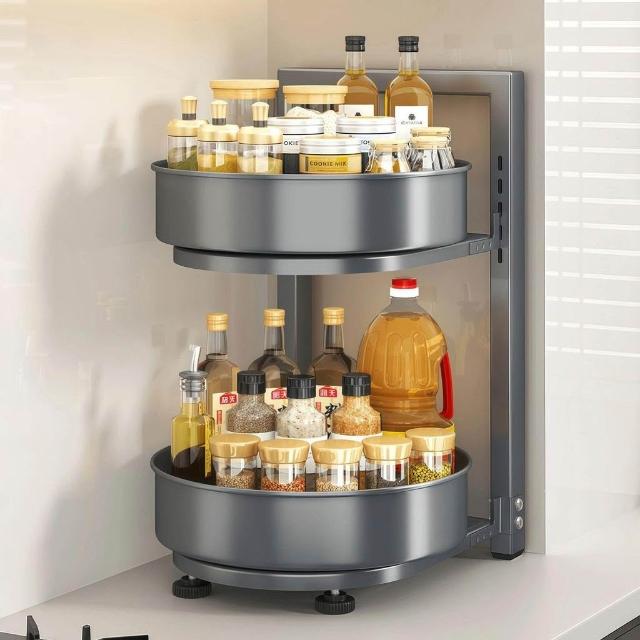 360度可旋轉調味料置物架 廚房檯面多功能收納 油鹽醬醋調味瓶罐整理盒 居家主婦料理空間魔術利用 烹飪拿取順手防滑收納盤