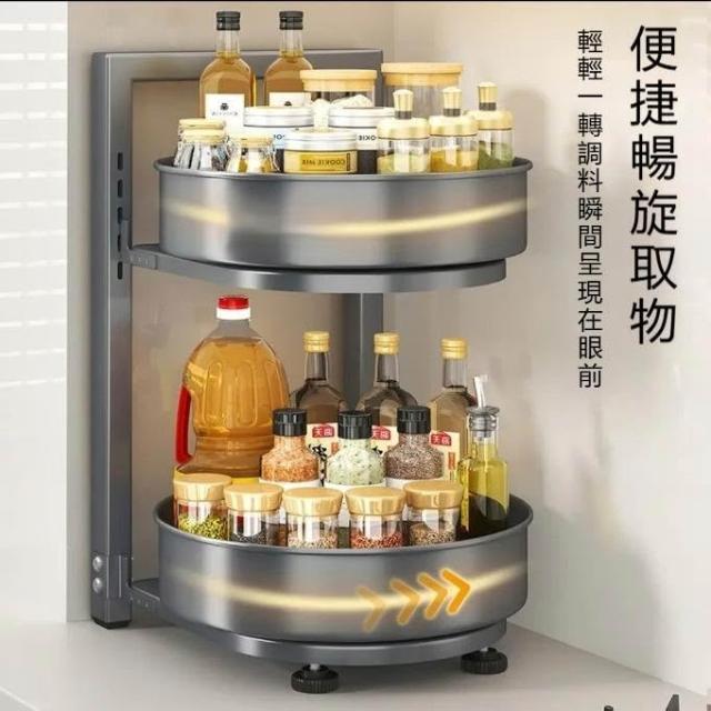 360度可旋轉調味料置物架 廚房檯面多功能收納 油鹽醬醋調味瓶罐整理盒 居家主婦料理空間魔術利用 烹飪拿取順手防滑收納盤
