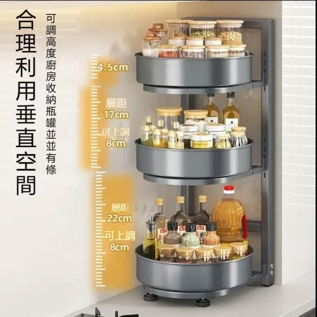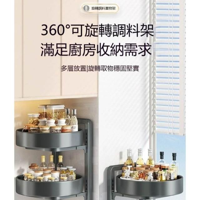 360度可旋轉調味料置物架 廚房檯面多功能收納 油鹽醬醋調味瓶罐整理盒 居家主婦料理空間魔術利用 烹飪拿取順手防滑收納盤