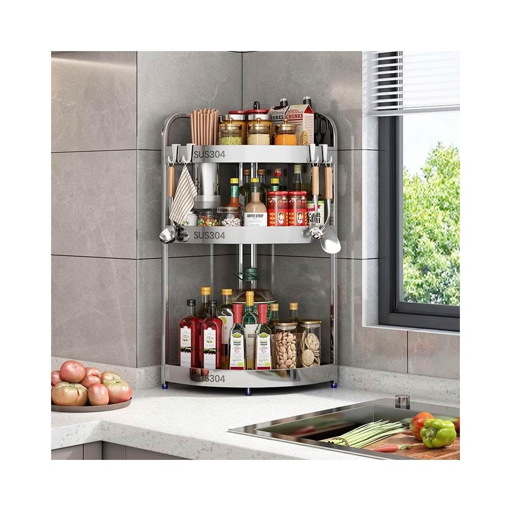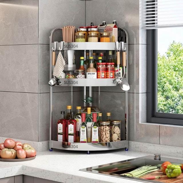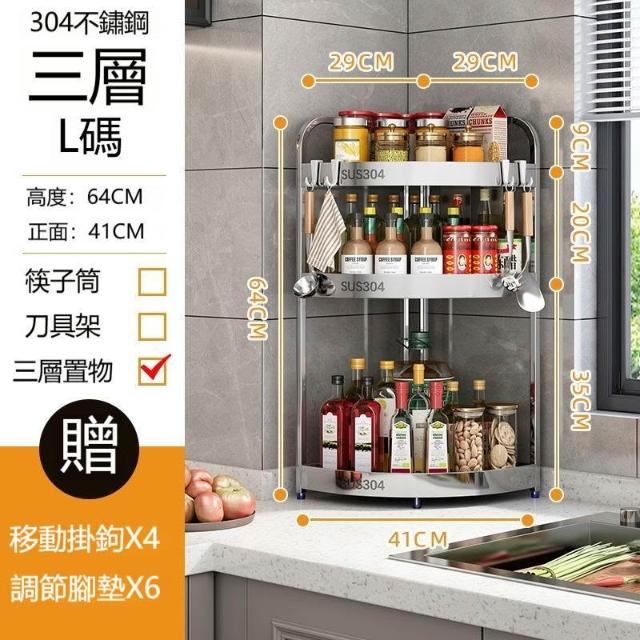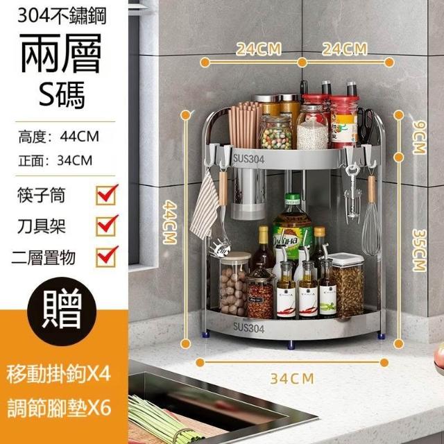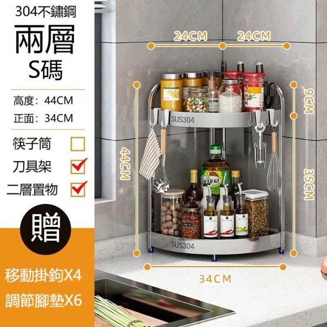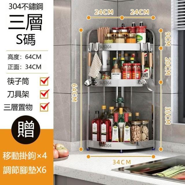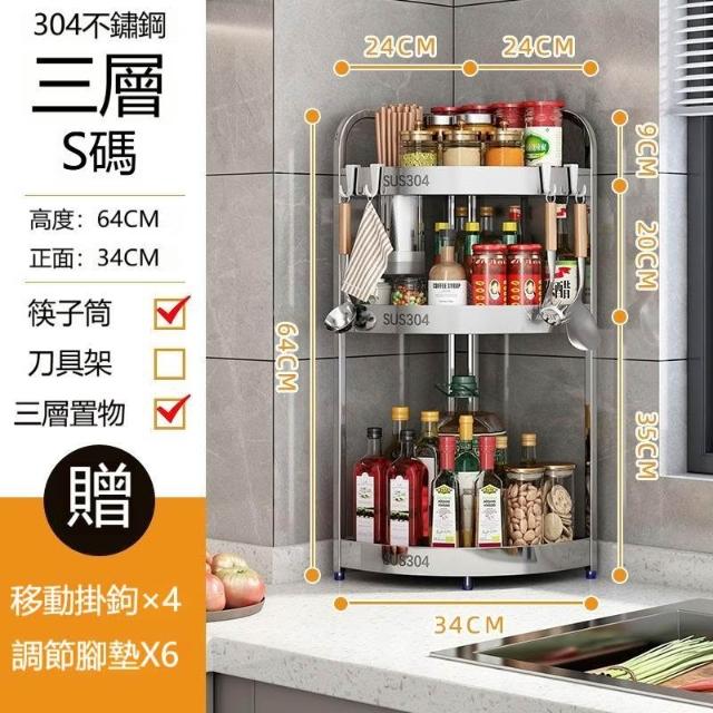 304不鏽鋼廚房防鏽置物架 檯面牆角調味料三角收納架 刀架筷子筒多功能整理架 居家主婦料理環境規劃 烹飪廚具通風瀝水防霉