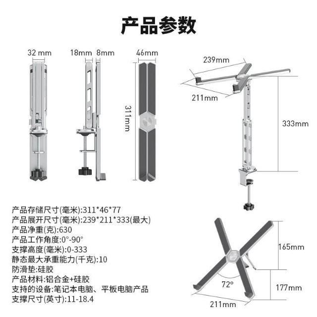 含發票 筆電支架 桌面支架 電腦支架 電腦托 筆記本電腦支旋轉增高散熱支架鋁合金可拆卸便攜式跨境多用途支架