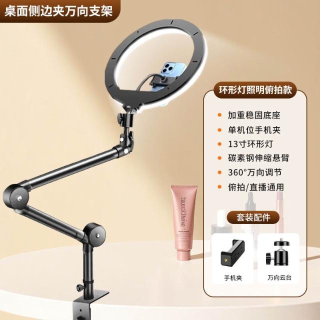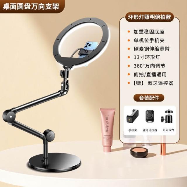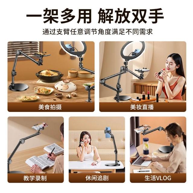 含發票 手機支架 多功能支架 平板支架 筆電支架 專業俯拍手機支架新款直播帶補光燈桌面拍照攝影錄視頻拍書法畫畫