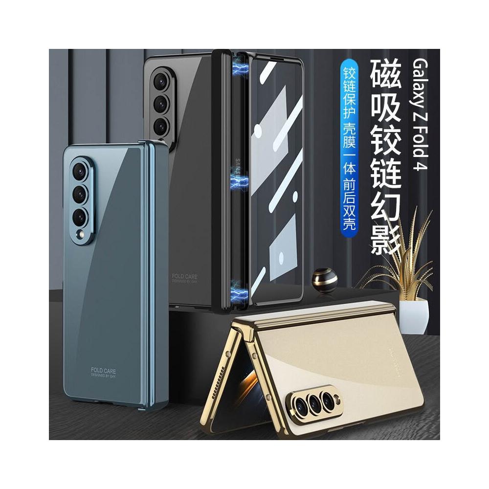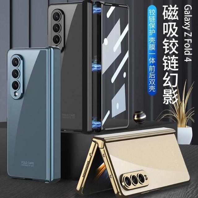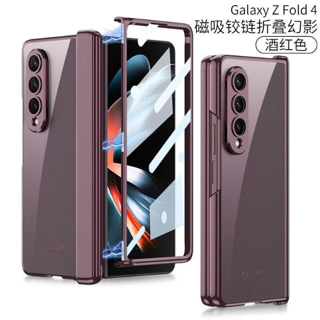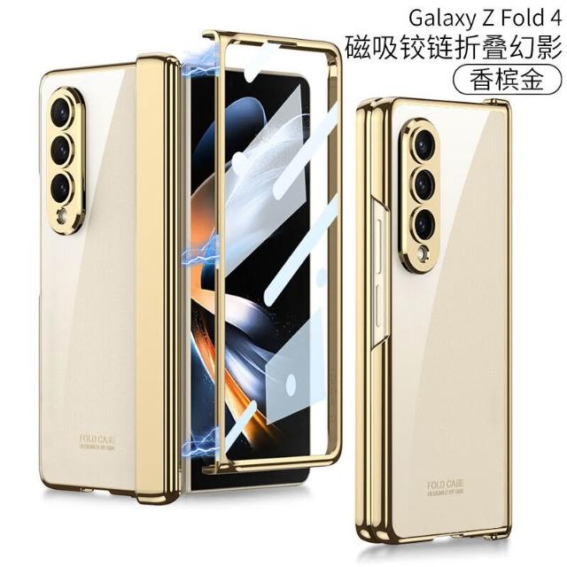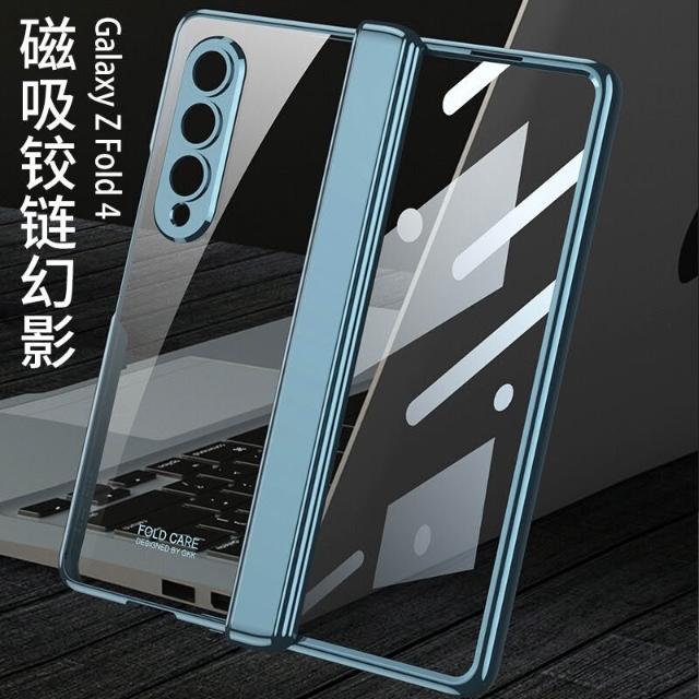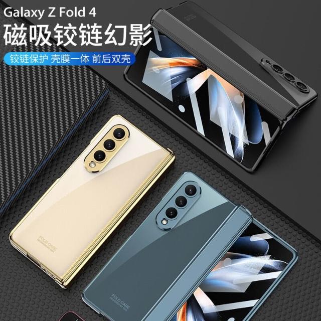 適用三星Z Fold4手機殼磁吸折疊鉸鏈全包殼膜透明電鍍幻影保護套