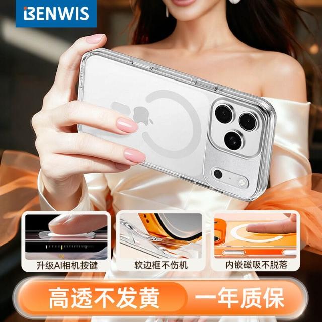 BENWIS適用iPhone17磁吸手機殼蘋果17ProMax磁吸手機殼透明保護套
