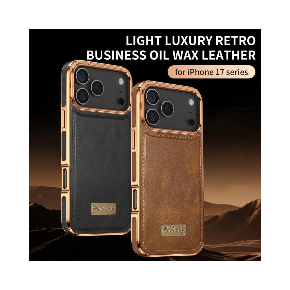 適用蘋果17手機殼iPhone16Promax電鍍油蠟瘋馬紋全包鏡頭側帖15輕