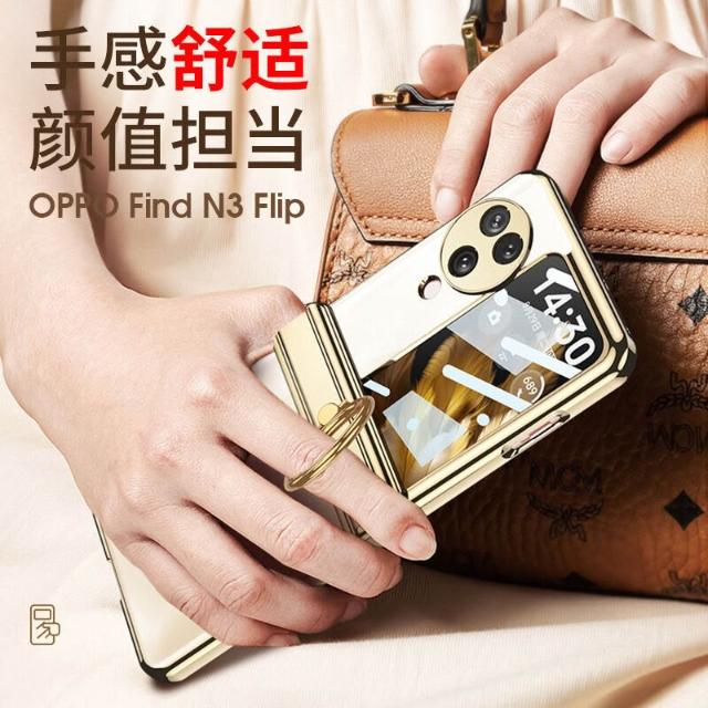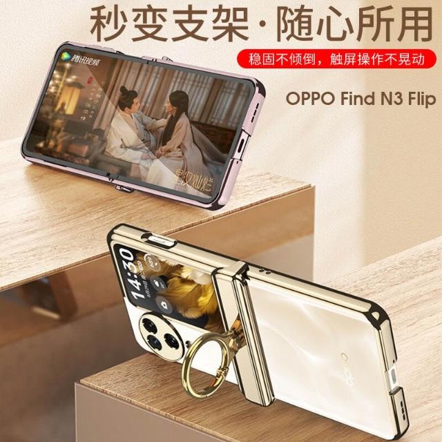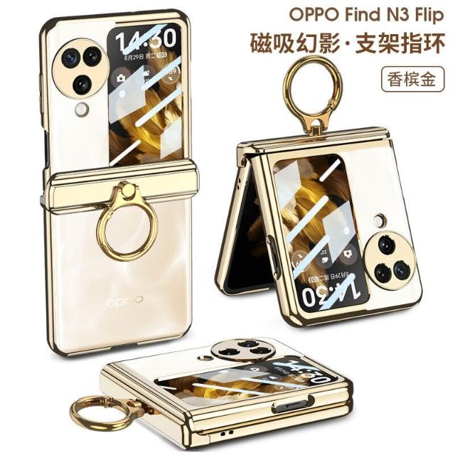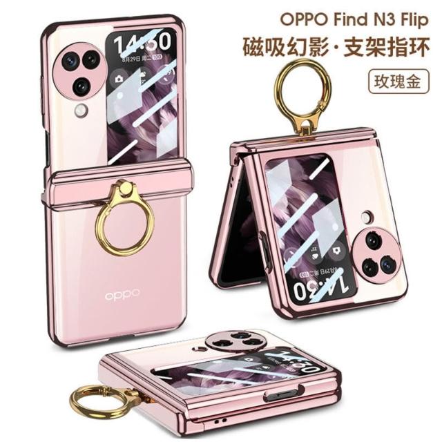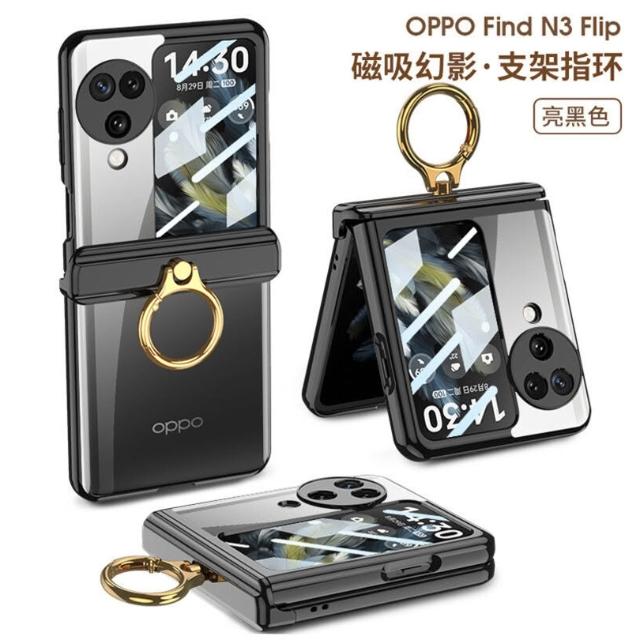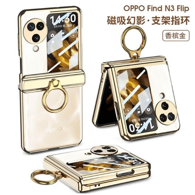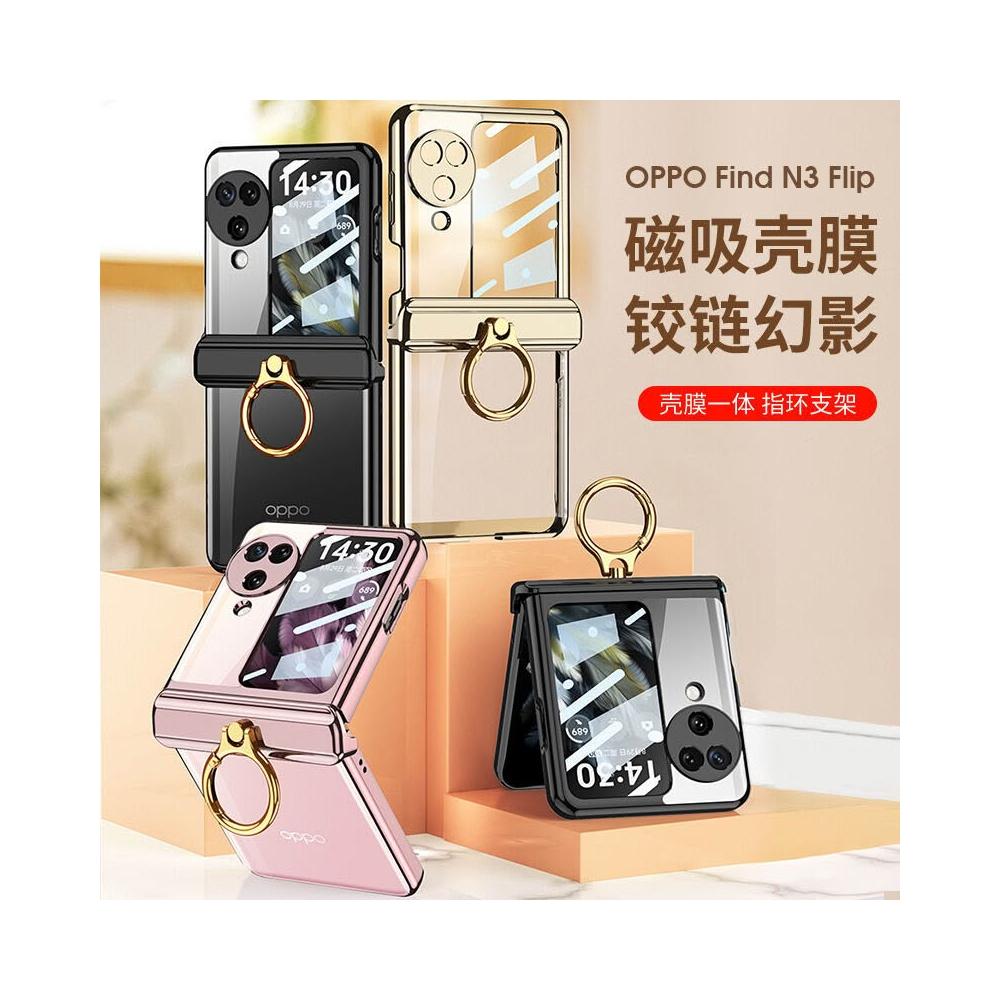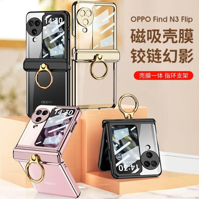 適用OPPO find N3 flip手機殼磁吸鉸鏈指環支架殼膜一體N3保護套