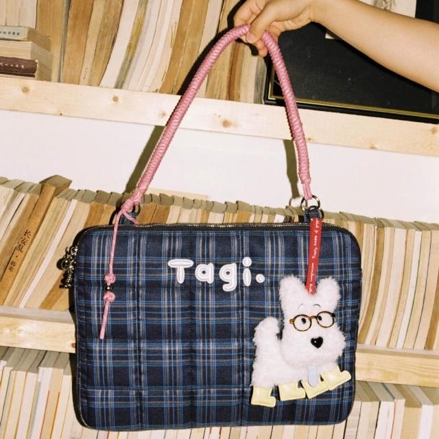 筆電包 電腦包 背包 tagi.編織小枕頭新款刺繡串珠15寸大容量手提單肩電腦包筆記本包