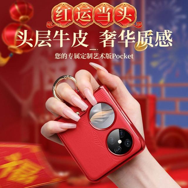 華為Pocket 2手機殼真皮折疊屏p50女款全包防摔超薄藝術版保護殼