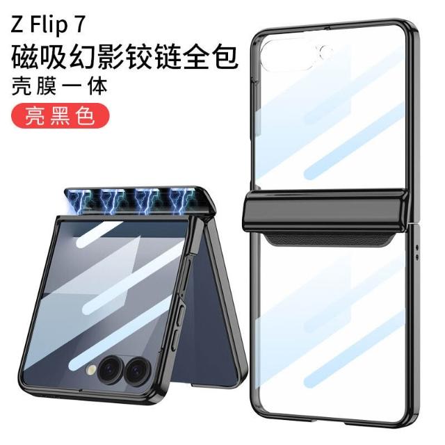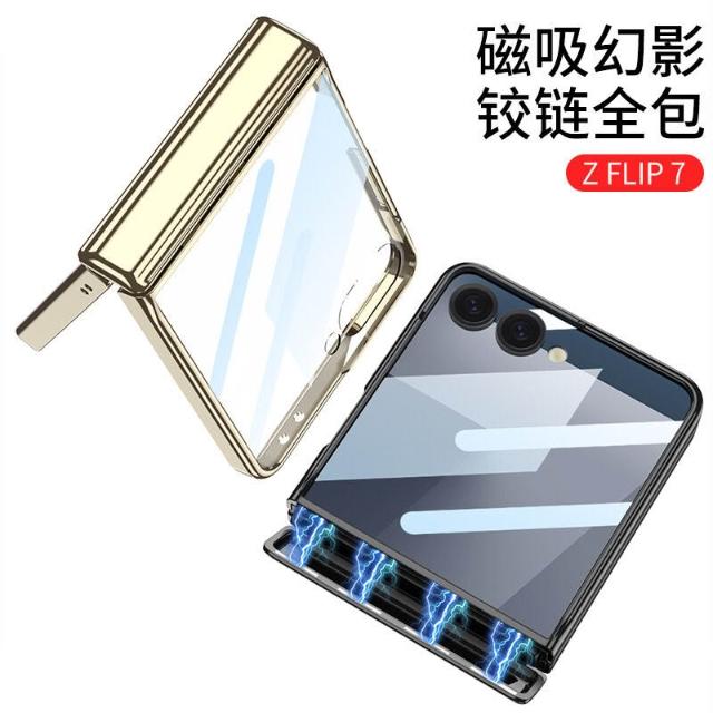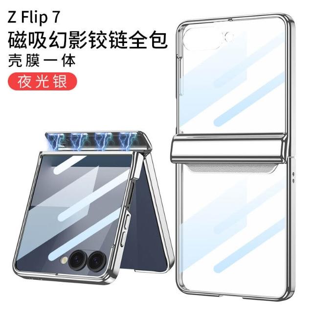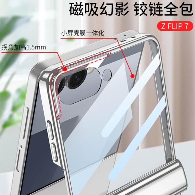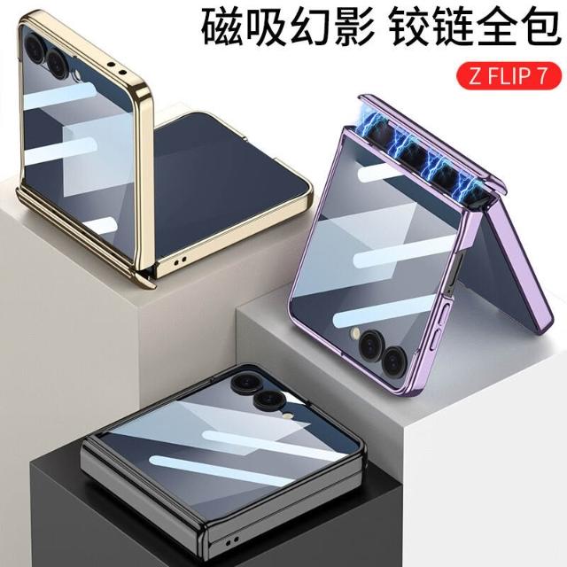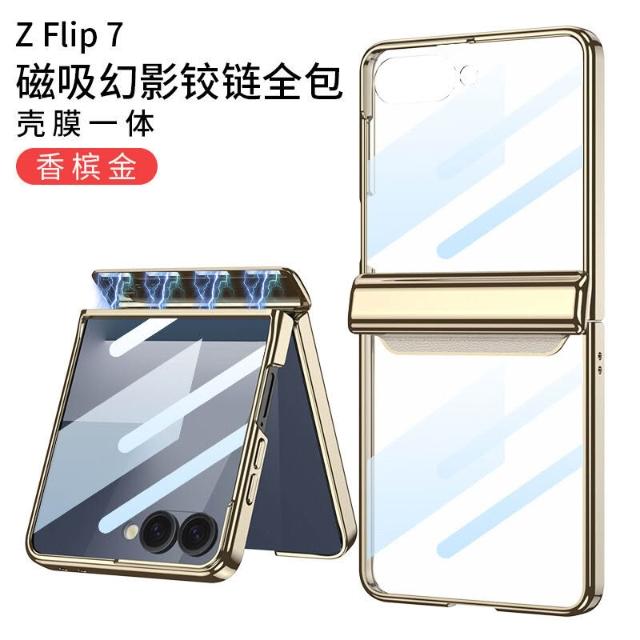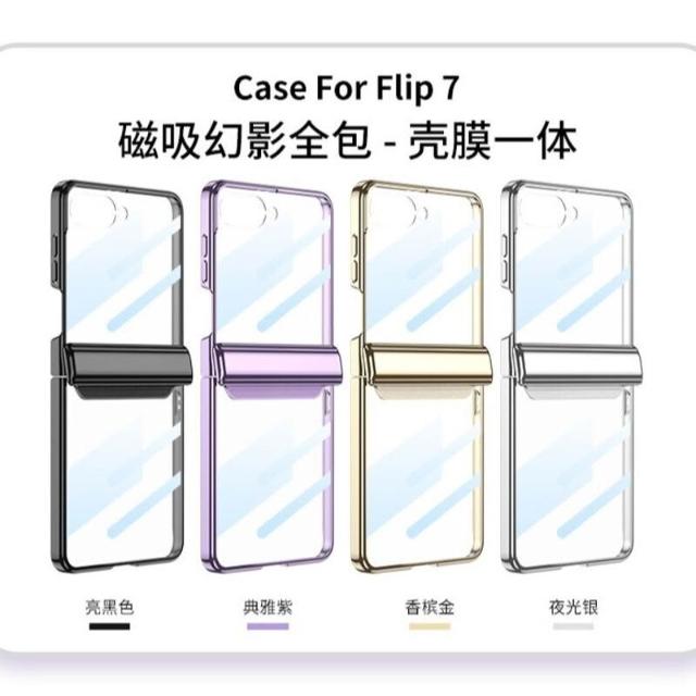 適用三星ZFlip7手機殼折疊屏殼膜一體電鍍輕奢女磁吸簡約時尚
